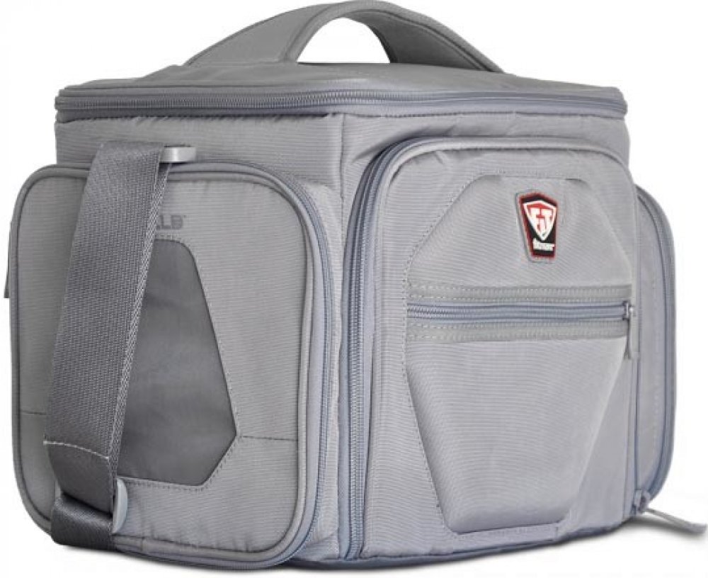 Skvělý design. Materiály nejvyšší kvality. Inovativní funkce. Termotaška SHIELD posouvá meal management na další úroveň. Je lehký, přenosný, s pevným polyesterovým nylonem a pevným, polstrovaným a odnímatelným ramenním popruhem. Jednoduché uspořádání jídel, obsahuje 3 velké krabičky, dva chladící gely, vlastní dávkovač vitamínů a bílkovin. SHIELD má dvě super inteligentní roztažitelné vnější kapsy pro láhev s vodou, bílkovinné tyčinky a ovoce. Je zde dokonce místo, kde můžete zavěsit klíče. Zadní vnější část obsahuje popruh pro zavazadla a kapsu pro časopis nebo tablet. S termotaškou SHIELD můžete jednoduše jít do práce nebo do fitka a budete mít zdravé jídlo vždy po ruce.