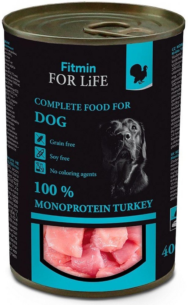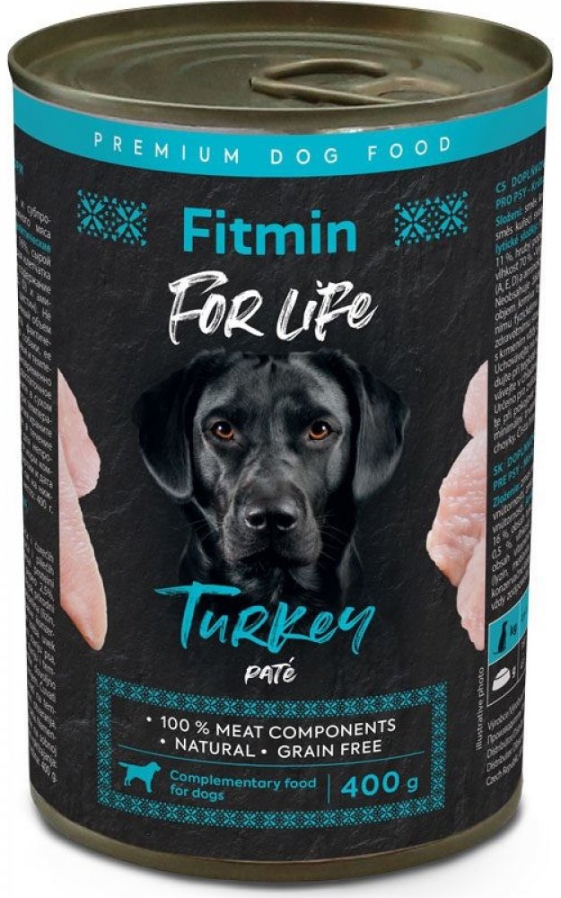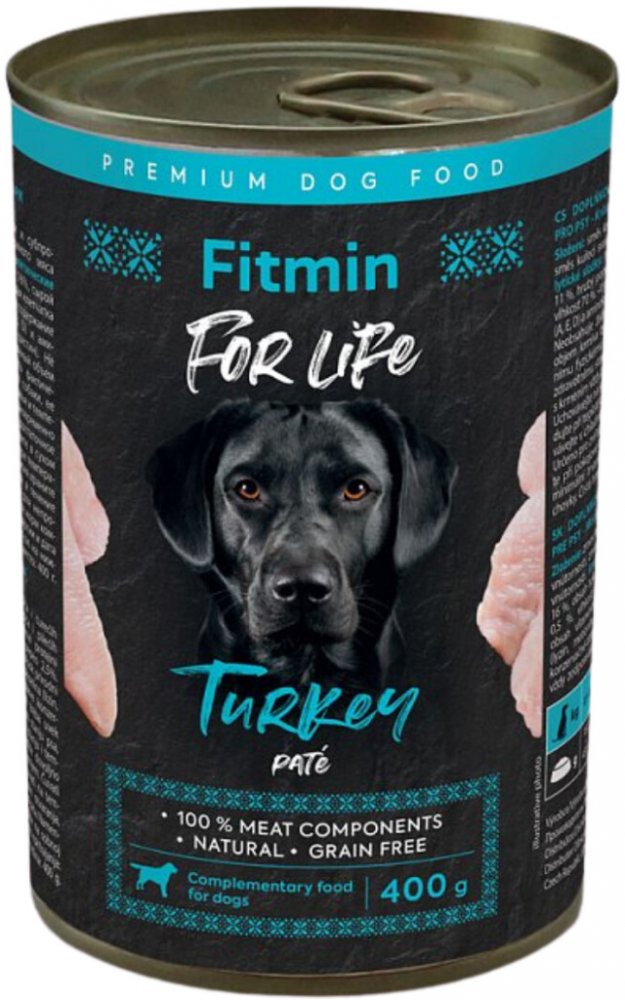 Nová receptura konzerv Fitmin For Life. Krůtí konzerva v podobě paté je vyrobena z čerstvého masa a díky tomu si zachovává jedinečnou chuť. Je vhodná jako doplnění a oživení suchého krmiva. Konzervy jsou doplňkové krmivo. Je Váš pes aktivní? Skáče, běhá, aportuje a potřebuje větší příjem energie? Neváhejte mu dát ochutnat krůtí konzervu vyrobenou z čerstvého masa bez obsahu barviv, sóji, aromat a chemických dochucovadel. Díky šetrné přípravě zajišťuje masová konzerva zachování živin a vyvážený poměr vitamínů a minerálů. Díky tomu bude váš pes spokojený a plný energie.