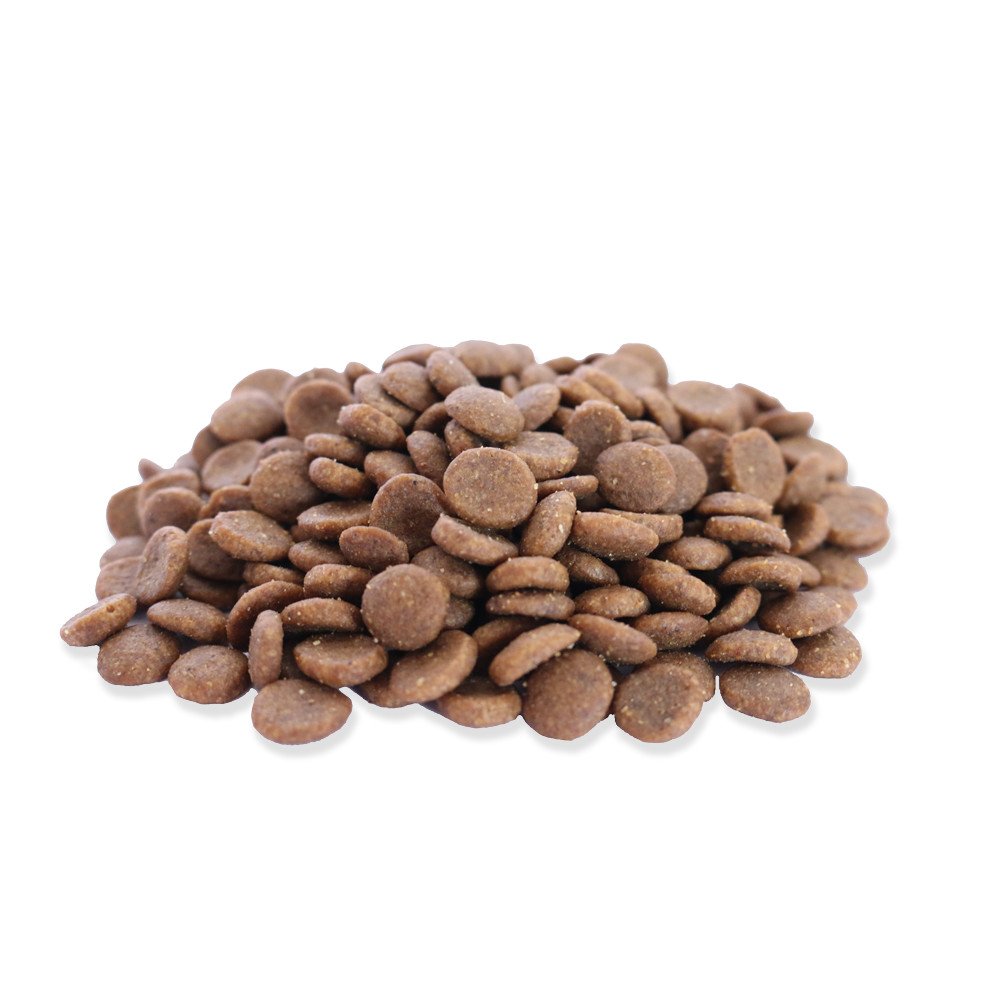 Maso (sušené kuřecí maso 35 %, čerstvé kuřecí maso 20 %, hydrolyzovaný kuřecí protein 3,8 %), rýže, drůbeží tuk, oves, řepná vláknina, jablečné výlisky, hrách semeno, slepičí vejce, přírodní zdroj vlákniny, kvasnice, lněné semínko, lososový olej 1 %, inaktivované kvasinky rodu Saccharomyces cerevisiae (betaglukany) 0,7 %, chlorid draselný, kořen čekanky, yucca 0,01 %.
