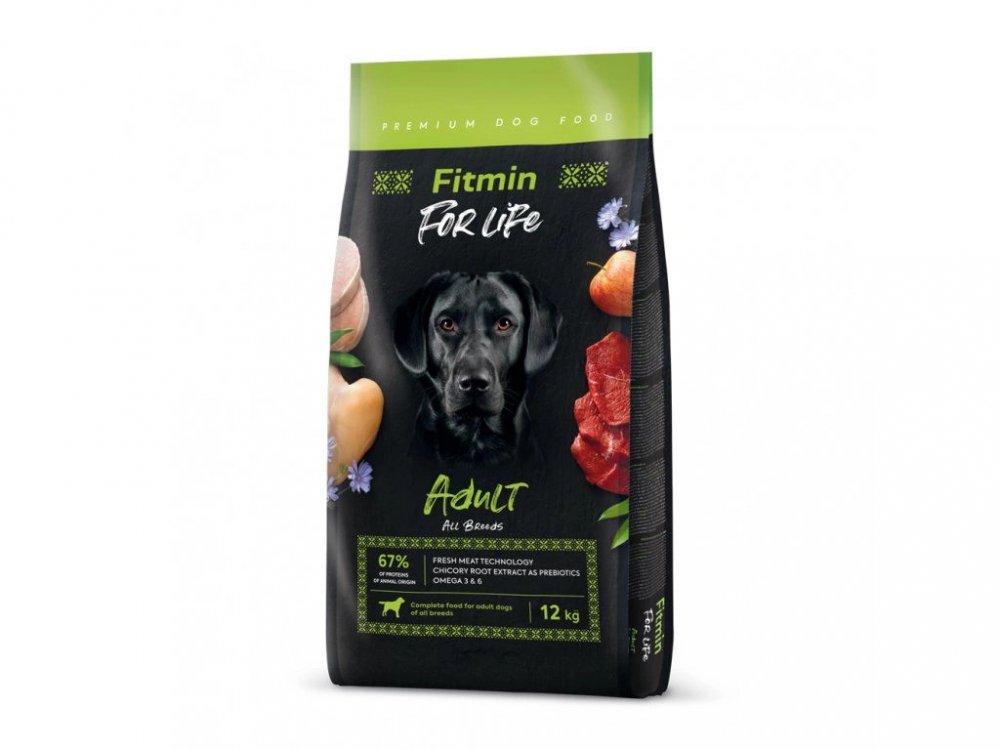 Výhody krmení pro psy Fitmin For Life 42 % surovin živočišného původu, 17,5 % čerstvého drůbežího masa a drůbežích produktů,