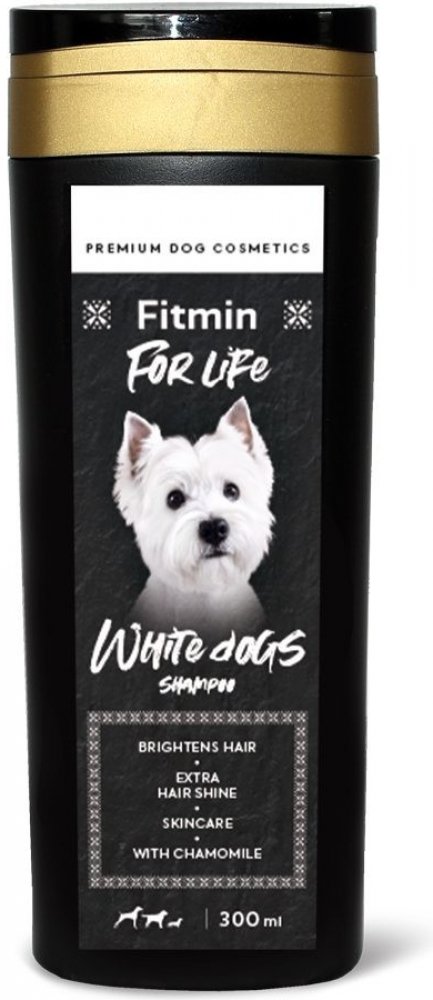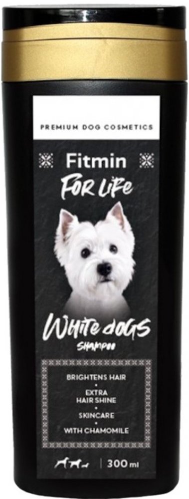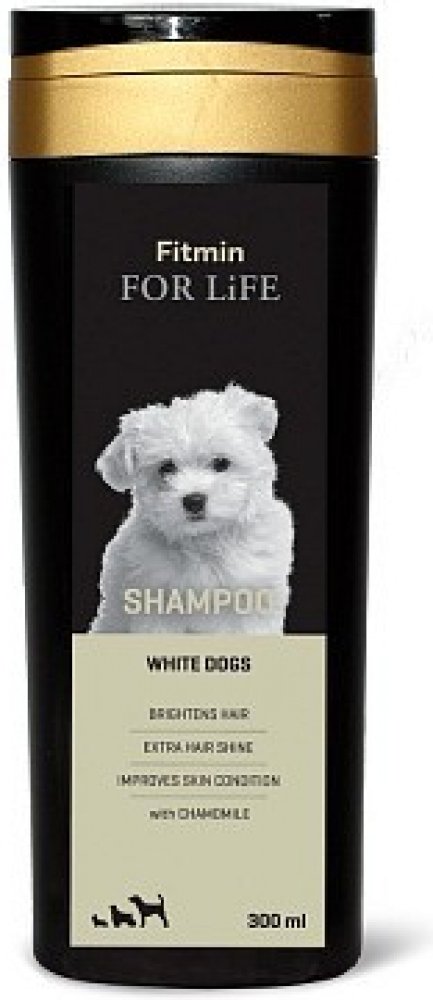 Fitmin For Life šampon pro bílé a světlé psy, který má zesvětlující účinky. Šampon také zvyšuje lest srsti a pečuje o pokožku, obsahuje heřmánek