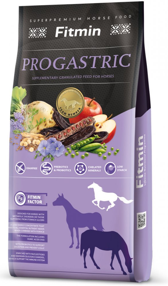 Granulované, doplňkové krmivo Fitmin PROGASTRIC je vhodné podávat koním s požadavky na bezobilné krmivo s nízkým obsahem škrobu, pro koně s metabolickými poruchami a trpící žaludečními vředy.