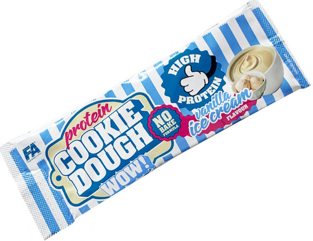 O WOW! Cookie Dough:Proteinový dezertní prášek vyrobený z mléčného proteinového koncentrátu, bezcukerných sladidel jako je sukralóza a stévie, a stabilizátorů. Smíchejte ~40 g se 100 ml vody pro krémovou, těstu podobnou konzistenci. Každá porce obsahuje přibližně 22 g bílkovin, ~6 g sacharidů, ~5,6 g tuku a ~162 kcal.