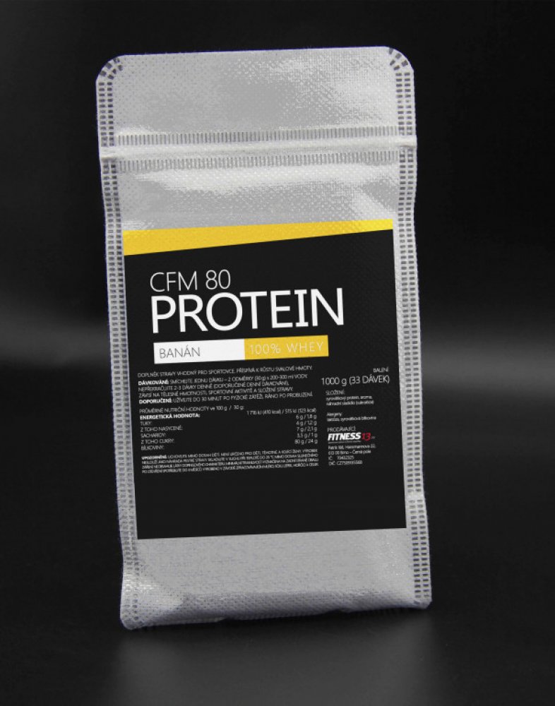 Fitness13 CFM 80 je syrovátkový protein, který vyniká dobrou stravitelností. Ve 100 g proteinu je obsaženo cca 80% kvalitních bílkovin. Tento proteinový nápoj je vhodný jak k hubnutí (vhodný do diety), tak přibírání svalové hmoty.