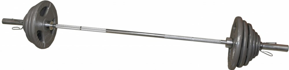 Olympijská činka - 127,5 kg je vyrobena pro domácí i komerční posilovny. Činka je sestavena z kvalitních litinových kotoučů a 220 cm dlouhé osy s otočnými nakládacími částmi z kvalitní oceli. Kotouče mají úchopy pro pohodlnou manipulaci.