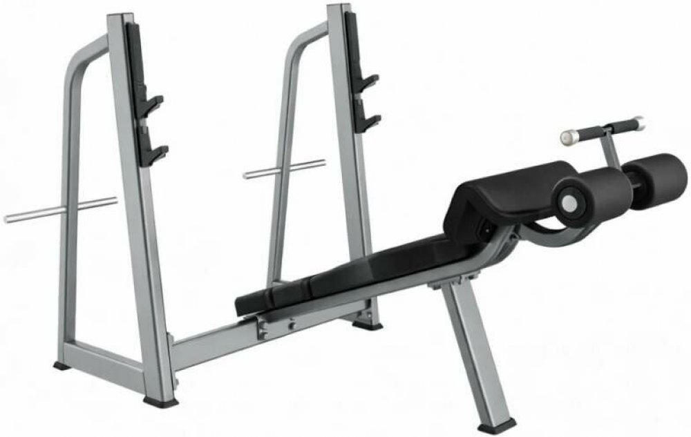 Posilovací lavice na bench press hlavou dolů slouží pro efektivní trénink spodní části prsních svalů. Konstrukce s negativním sklonem umožňuje přirozený rozsah pohybu a větší zapojení dolní části hrudníku. Lavice je vybavena stojany na osu a odkládacími trny na kotouče.