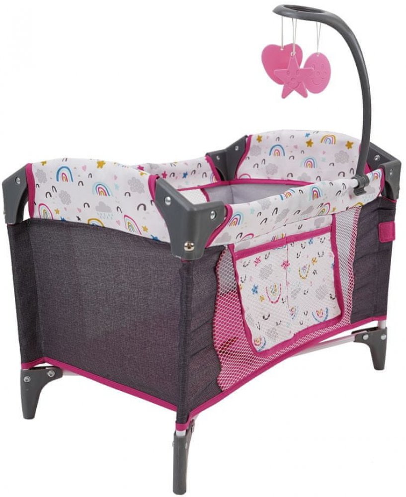 Five o Nine Crew Cestovní postýlka pro panenky s kolotočem tmavě šedá