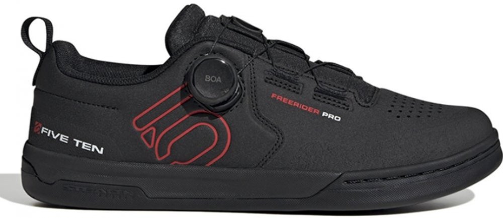 Boty na horské kolo s plochými pedály a technologií BOA® vyrobené částečně ze směsi recyklovaných a obnovitelných materiálů.Tyto boty adidas Five Ten Freerider Pro Mountain Bike ti dopřejí maximální pohodlí a podpoří tvůj výkon na plochých pedálech. Systém šněrování BOA® Fit umožní nastavit si míru utažení bot. Můžeš je velice rychle stáhnout nebo povolit, zkrátka dle potřeby. Jsou maximálně funkční a pohodlné. Mají přilnavou gumovou podešev Stealth, rychleschnoucí svršek a vyváženou pružnost. Zesílená špička tlumí nárazy a odpružená mezipodešev ti umožní soustředit se pouze na jízdu na kole. Recyklované materiály nám umožňují zpracovat produkty, které již dosloužily a snížit množství odpadu. Závislost na omezených zdrojích snižujeme také používáním obnovitelných materiálů. Naše produkty vyrobené ze směsi recyklovaných a obnovitelných materiálů obsahují minimálně 20 % těchto materiálů.standardní velikostsystém šněrování BOA® s přesným nastavenímsyntetický svršek se zesíleným krytím špičkytextilní podšívkamezipodešev z EVAhmotnost: 361 g (velikost 42 2/3)rozdíl v podešvi: 8 mm (pata: 25 mm / špička: 17 mm)gumová podešev Stealth S1 se vzorkem Dottyobsahuje nejméně 20 % recyklovaných materiálů
