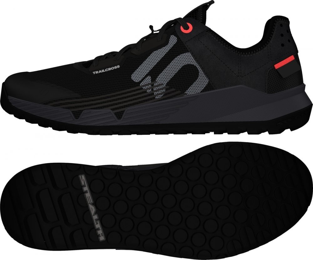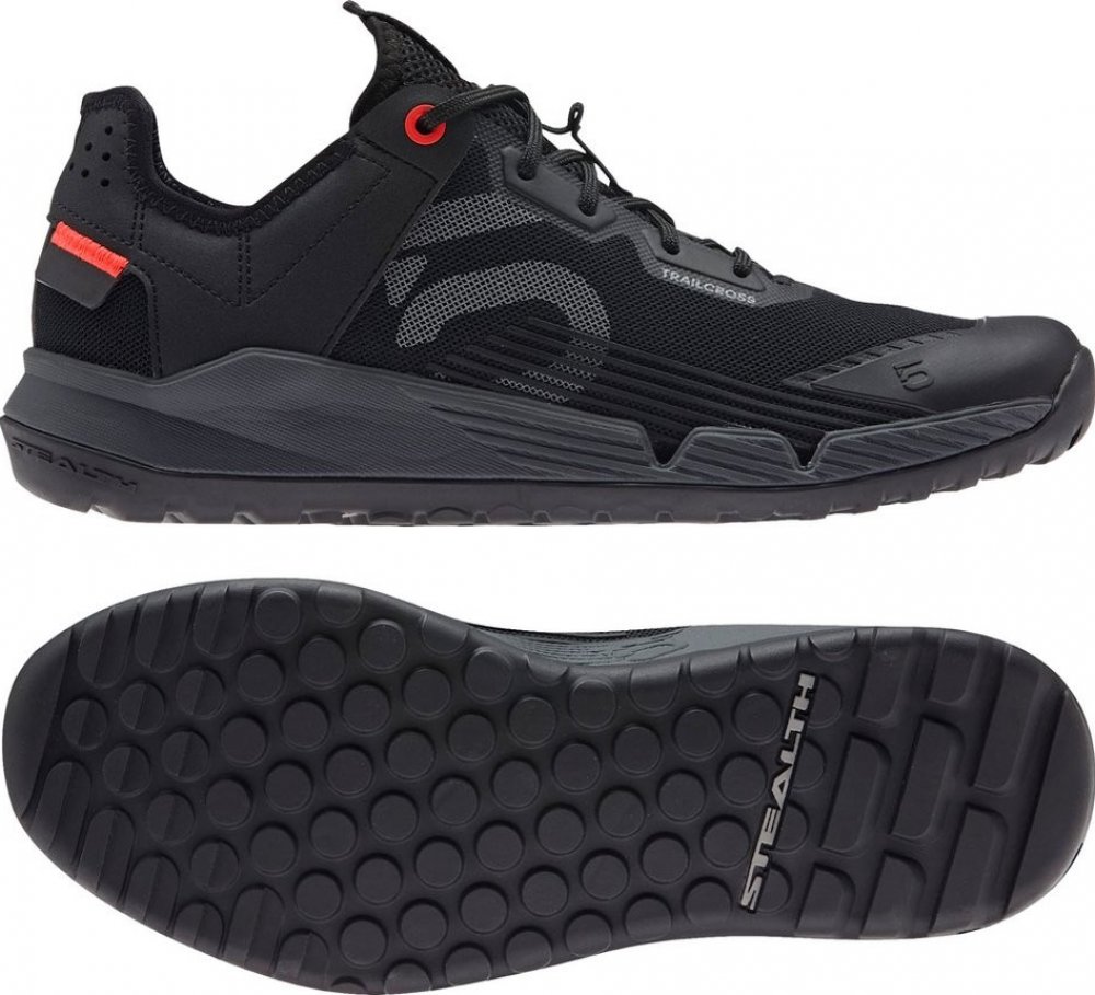 Boty Five Ten Trail Cross LT Black Grey Red Pravděpodobně nejuniverzálnější a nejpropracovanější boty na trhu. Určené pro freeride, enduro, all mountain, ale také pro tzv. trail buildery, nebo na turistiku. Znáš to. Jedeš na kole, objevuješ nové traily, ale občas tvoje nohy nestíhají. Vysedneš, tlačíš kolo do kopce, ale není to ono. S botama Trail Cross LT je i to tlačení do kopce pohodová věc. Boty jsou navrhnuty tak, aby se na nich perfektně jezdilo na kole s maximálním gripem, mají osvědčenou podrážku Stealth® Marathon s přední částí přizpůsobenou na chození do kopce a zadní částí zase dolů z kopce. Bota je perfektně odvětraná a vzdušná. Díky konstrukci z rychle schnoucích materiálů je bota hodně rychle suchá. Zvýšená ochrana kotníku z vnitřní strany boty Neskutečná je i váha těchto bot. Vypadají těžké, ale opak je pravdou. standardní velikost šněrování na tkaničky svršek z textilního materiálu a síťoviny kotníková sportovní obuv pro jízdu na kole zvýšený ochranný límec u kotníku z vnitřní strany boty