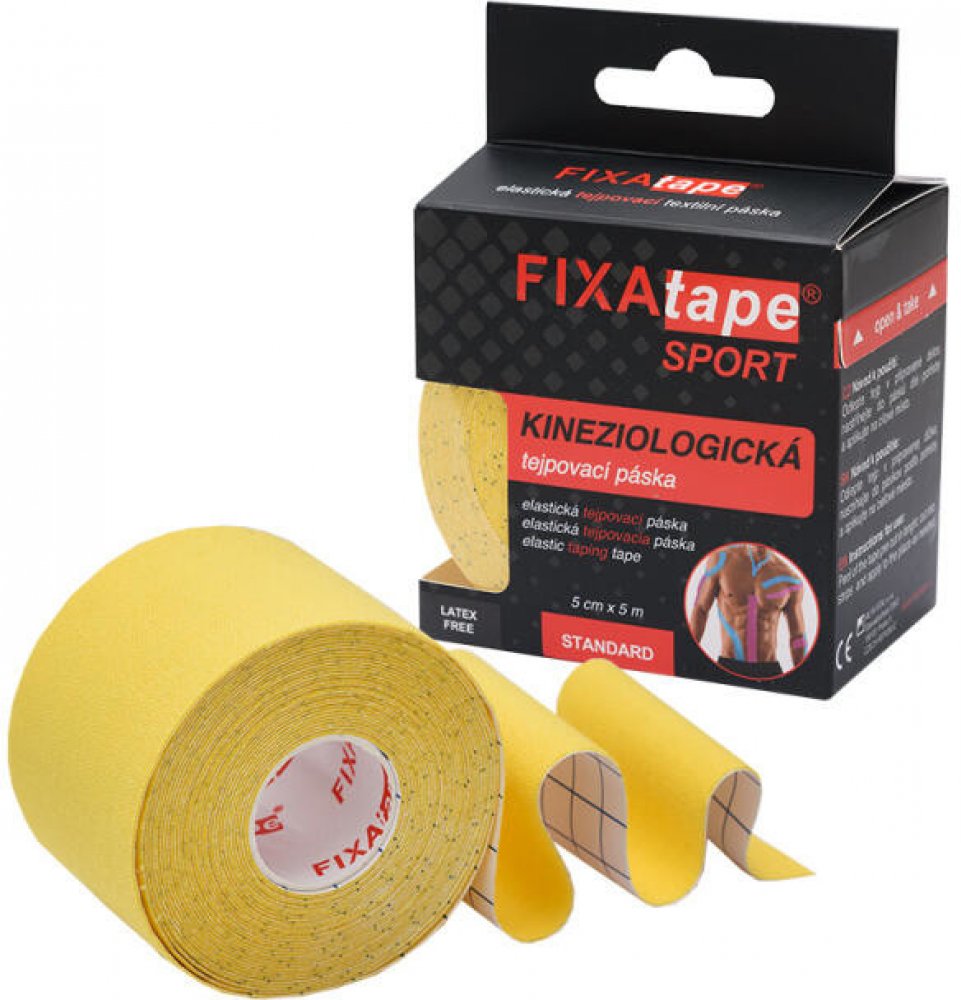 Tejpovací páska Fixatape Kinesio Standard je určená ke zpevnění svalů, kloubů a šlach při zvýšené pohybové aktivitě, zejména u výkonnostních druhů sportu. Správná aplikace napomáhá před možným svalovým přetížením. Tejpovací páska je vysoce elastická, neomezuje pohyb, je voděodolná a přilnavá. Balení obsahuje pásku žluté barvy s rozměry 5 cm x 5 m.