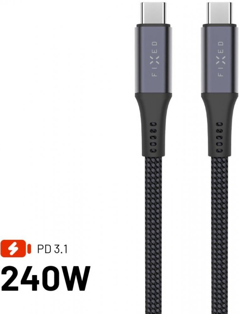 Fixed FIXDBP-CC2-GR Dlouhý nabíjecí a datový opletený FIXED s konektory USB-C/USB-C, PD 3.1, USB4gen2 20Gbps, 4K60Hz, 240W, 2m, šedý
