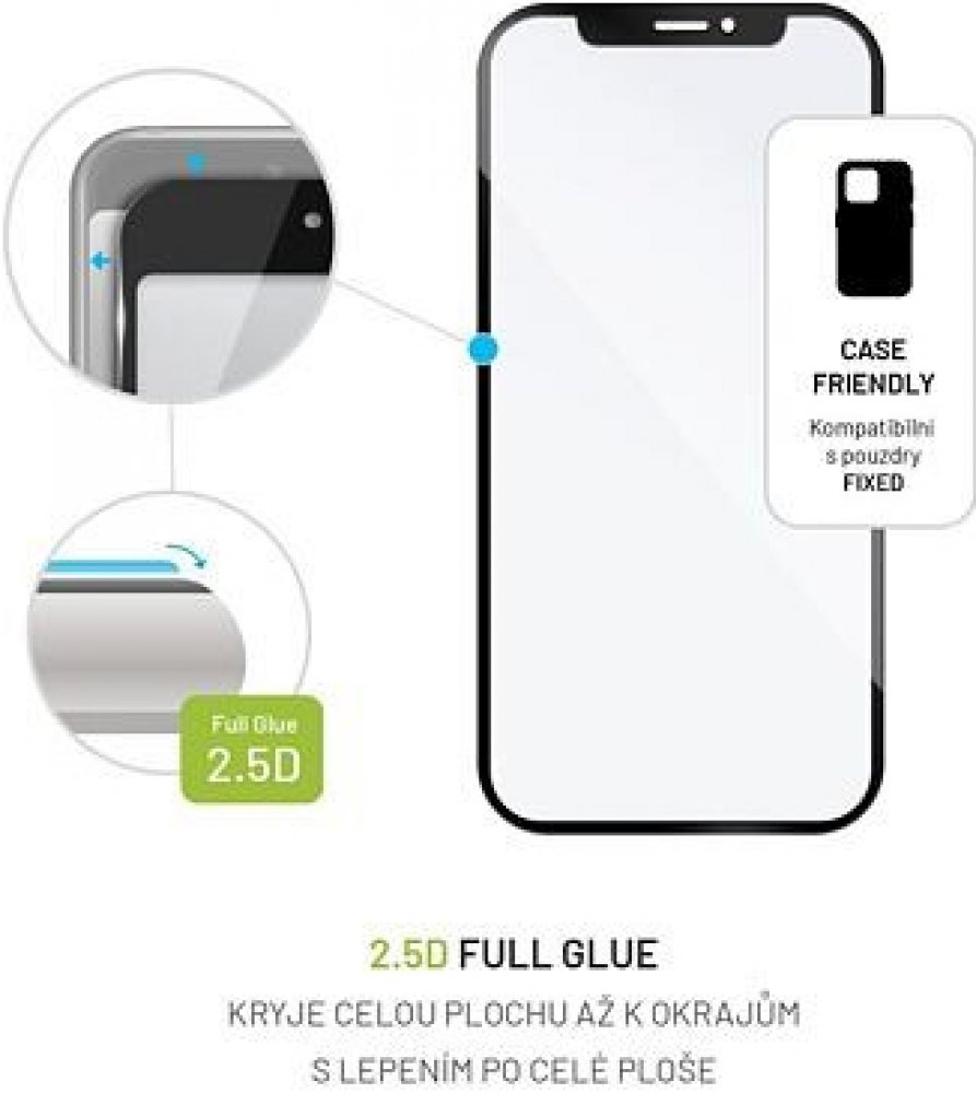 Vysoce kvalitní tvrzené sklo FIXED Full-Cover s lepením po celé ploše zajistí maximální ochranu displeje vašeho mobilního telefonu. Zabráníte tak případnému poškození v podobě prasklého nebo poškrabaného displeje. Sklo díky 2,5D designu kryje celou plochu displeje až k okrajům. Výhodou oproti běžným 2,5D sklům je lepení po celé ploše displeje telefonu, sklo tak lépe přilne k displeji a perfektně drží a netvoří se mapy. Navíc má i lepší citlivost dotyku. V balení najdete vše potřebné pro snadnou instalaci. Se sklem FIXED Full-Cover získá váš telefon kompletní ochranu displeje před nárazy, škrábanci i nečistotami. Vlastnosti: - ochranné tvrzené sklo pro telefon - 2,5D - kryje celou plochu displeje až k okrajům - lepení po celé ploše skla - tloušťka: 0,33 mm - 100% průhlednost - oleofóbní struktura proti otiskům prstů - lepší citlivost dotyku než u běžných 2,5D skel - vyrobeno přesně na míru daného telefonu - snadná instalace bez vzduchových bublin - velmi dobře se čistí - maximální ochrana displeje