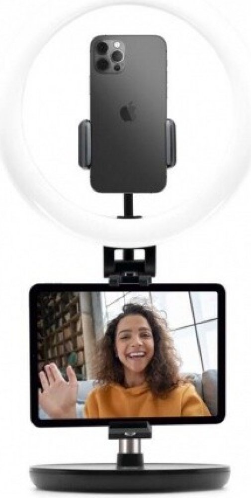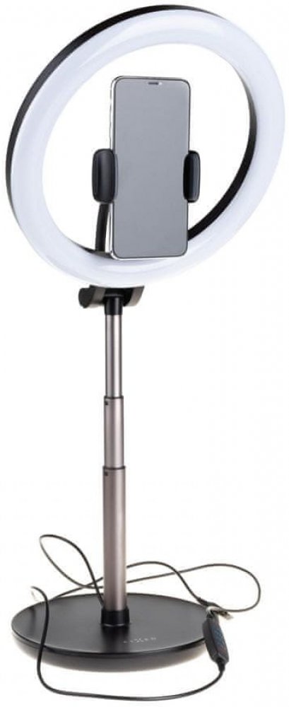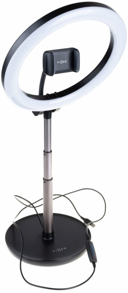 Univerzální stativ FIXED LEDRing Lite s kruhovým osvětlením představuje profesionální doplněk pro natáčení videa, streamování i focení. Spolu s vaším telefonem vytvoří stativ malé natáčecí studio přímo u vás doma. Hlavní předností stativu je světelný prstenec se 120 LED diodami a nastavitelným sklonem. Na napájecím USB kabelu je umístěno dálkové ovládání se třemi režimy teploty a deseti stupni jasu pro nastavení dokonalého osvětlení. Kleště pro telefon s šířkou 5 - 8,8 cm a ohebným ramenem jsou umístěny přímo uprostřed světelného kruhu. Široké možnosti nastavení a perfektní osvětlení dělá ze stativu FIXED LEDRing Lite ideální nástroj pro všechny nadšené tvůrce multimediálního obsahu na sociální sítě i jinam.