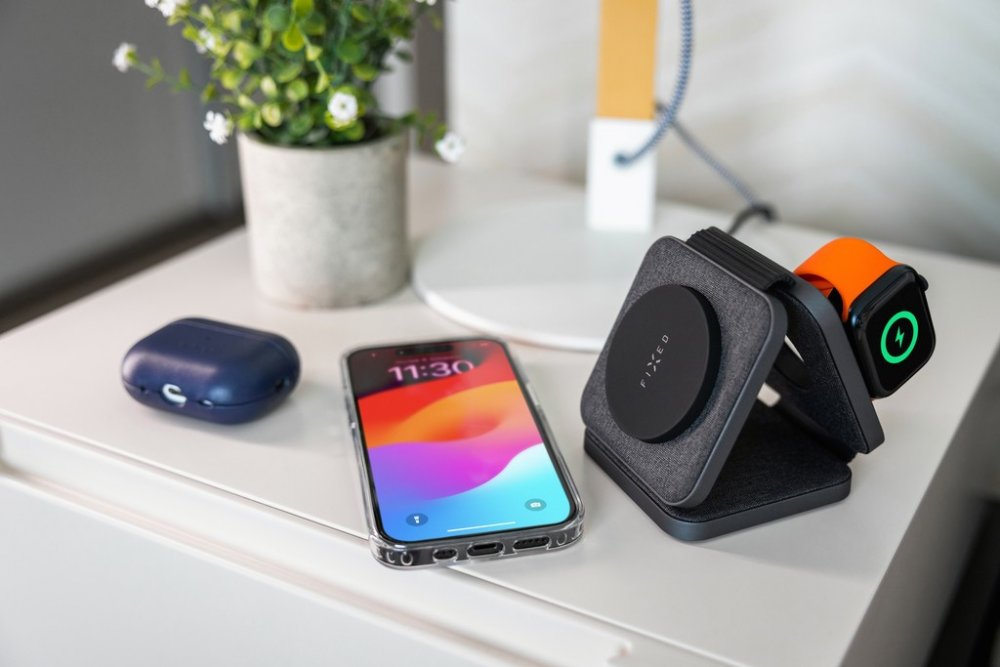 Bezdrátová skládací nabíječka MagFlex s technologií MagSafe od Fixedu je skvělým řešením pro nabíjení telefonu, sluchátek a hodinek. Její provedení vám dopřeje možnost klasického nabíjení na podložce. Nebo si jej snadno upravíte do podoby stojánku. Pokud potřebujete vzít si nabíječku na cesty, snadno ji složíte do kompaktního kapesného tvaru.