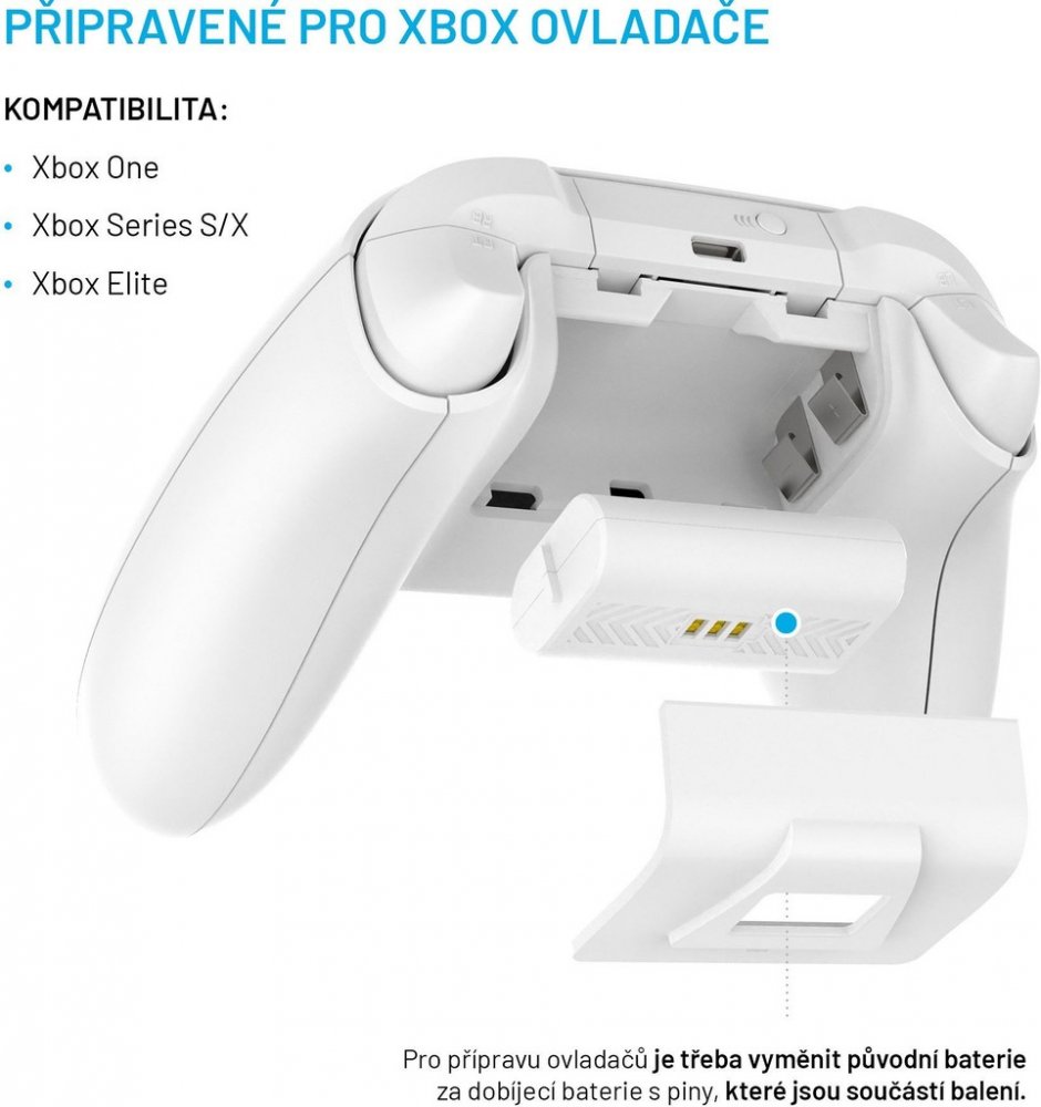 - nabíjecí dok pro ovladače Xbox One, Series S, X a Elite