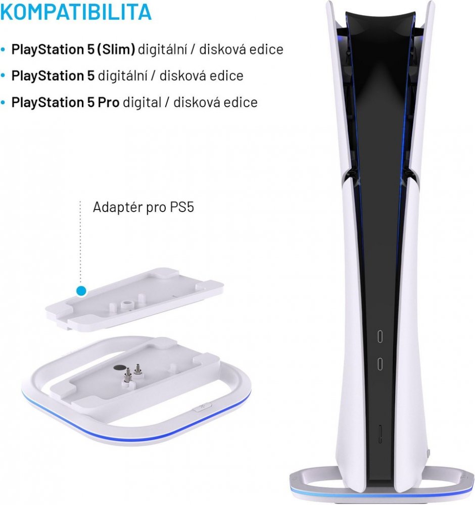 - stojánek pro bezpečné uchycení PlayStation 5/PlayStation 5 (Slim)/PlayStation 5 Pro