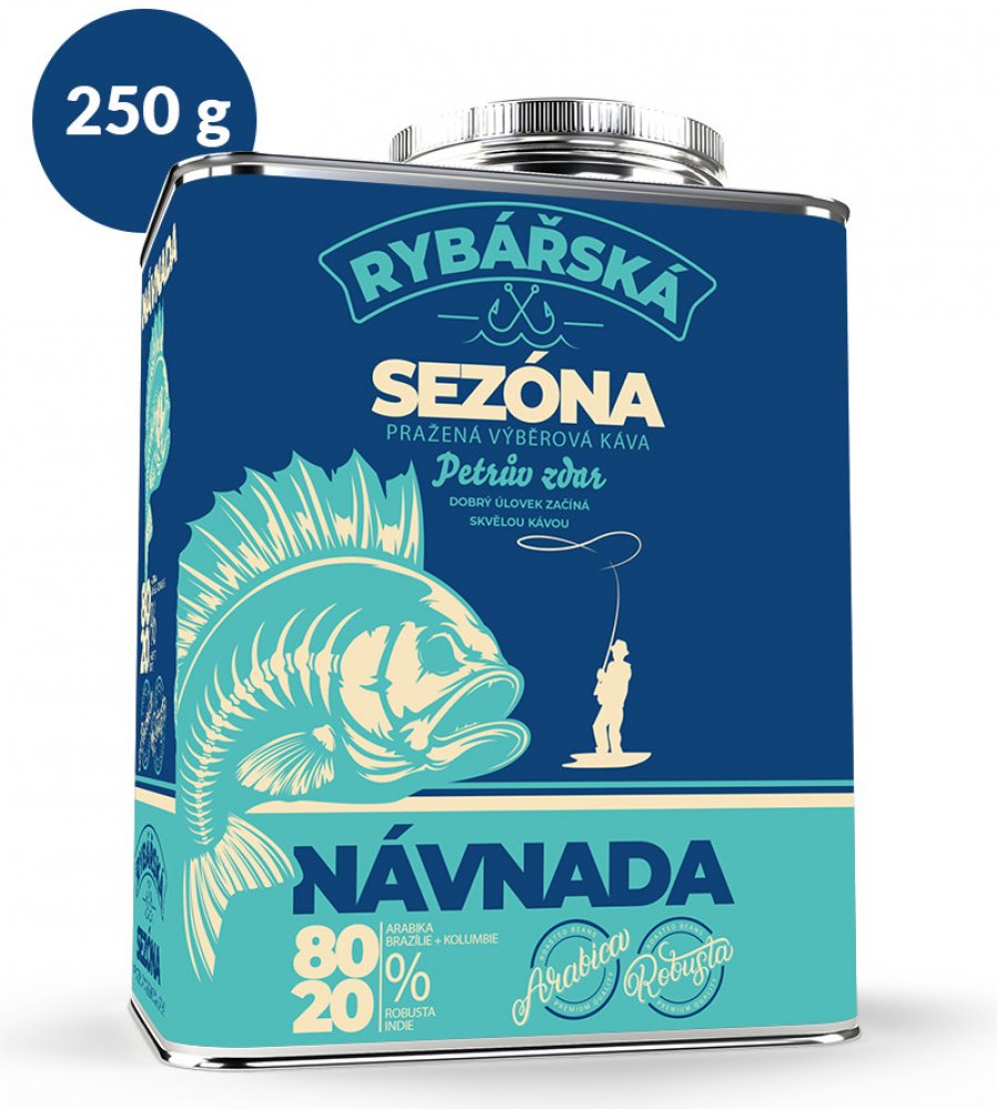 Fixi Coffee Rybářská návnada výběrová káva pro rybáře jemně mletá stylový plechový kanystr 250 g