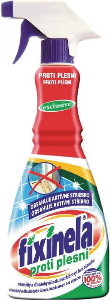 Fixinela proti plísni bělící tekutý čistící, bělící a dezinfekční prostředek, ničí bakterie a plísně. Fixinela proti plísni je tekutý biocidní prostředek vhodný pro odstranění plísní na stěnách, omítkách, betonu, kolem kuchyňského zařízení, dřezů, van, umyvadel, sprchových koutů, bazénů apod. Je vhodný pro kompletní sanaci vlhkých zdí budov a sklepních prostor. - bělicí a dezinfekční prostředek - vhodný pro likvidaci plísní na stěnách, omítkách, betonu, okolí kuchyňského zařízení, dřezů, van, umyvadel, sprchových koutů, bazénů apod.