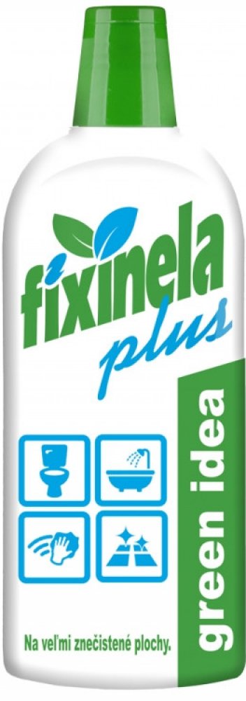 Fixinela Plus Zelený nápad. Vysoce účinný tekutý čisticí prostředek na čištění umyvadel, van, obkladů, sanitárních zařízení. Rozpouští usazeniny vodního a močového kamene, odstraňuje stojaté nečistoty a další usazeniny. Objem 500 ml.