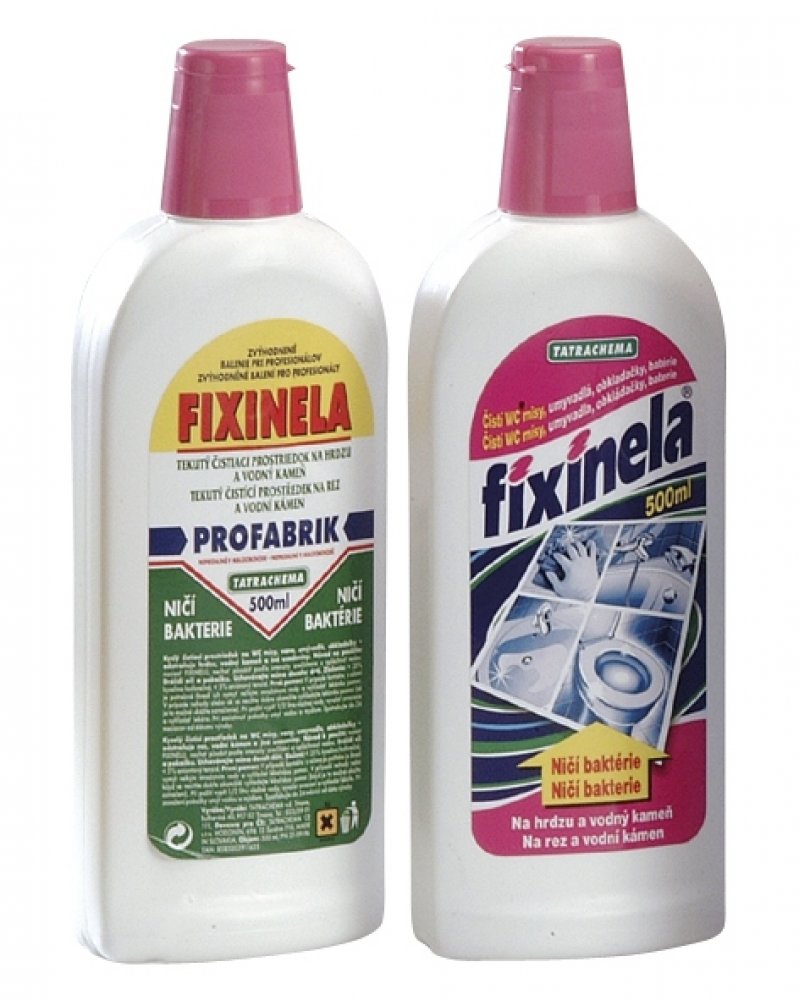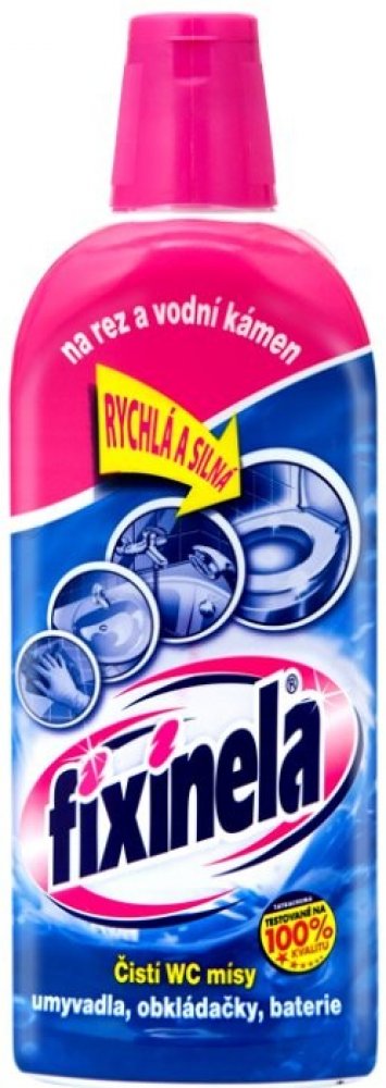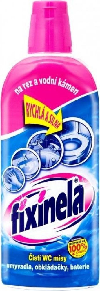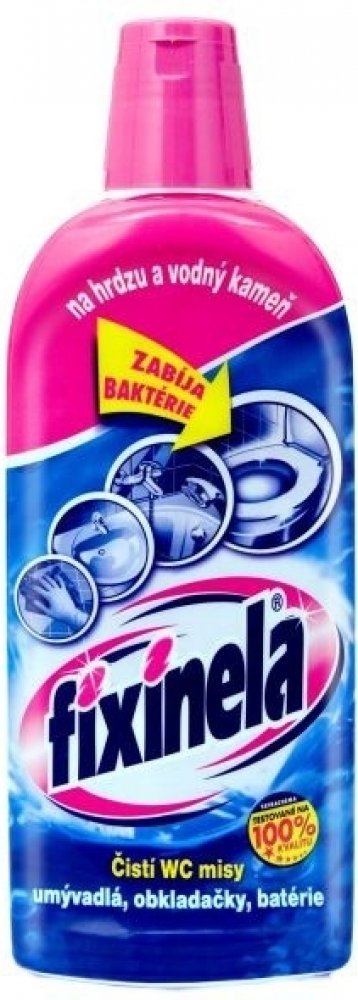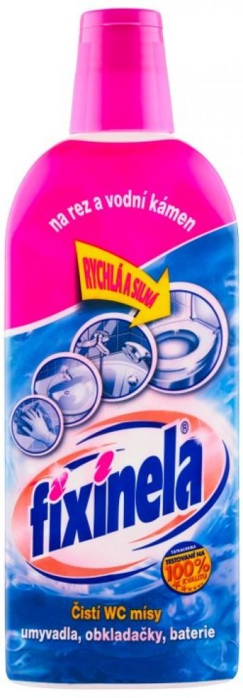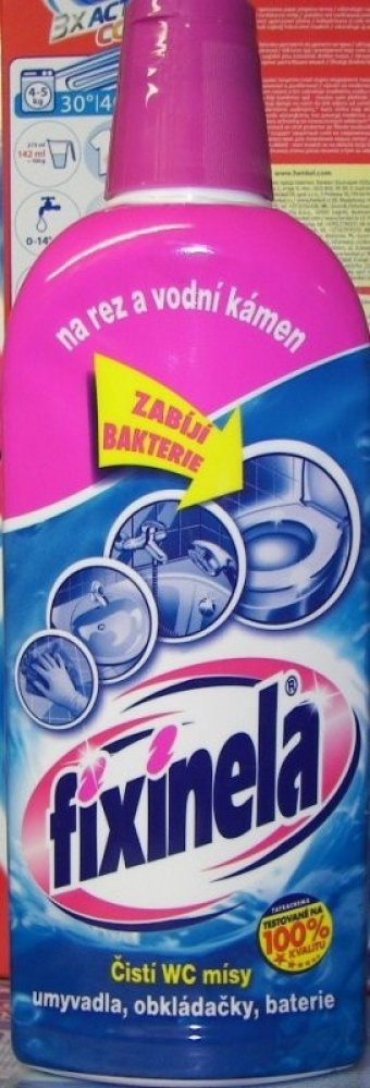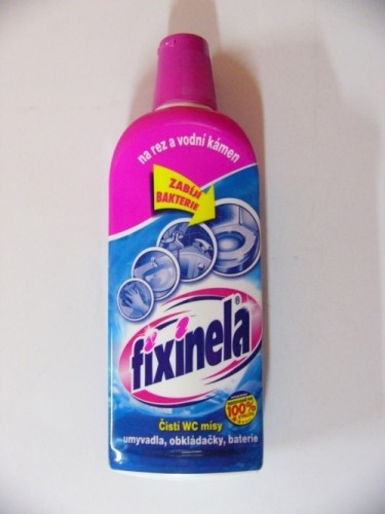 »přípravek je určen k čištění umyvadel, van, obkladaček, WC mís a podlah