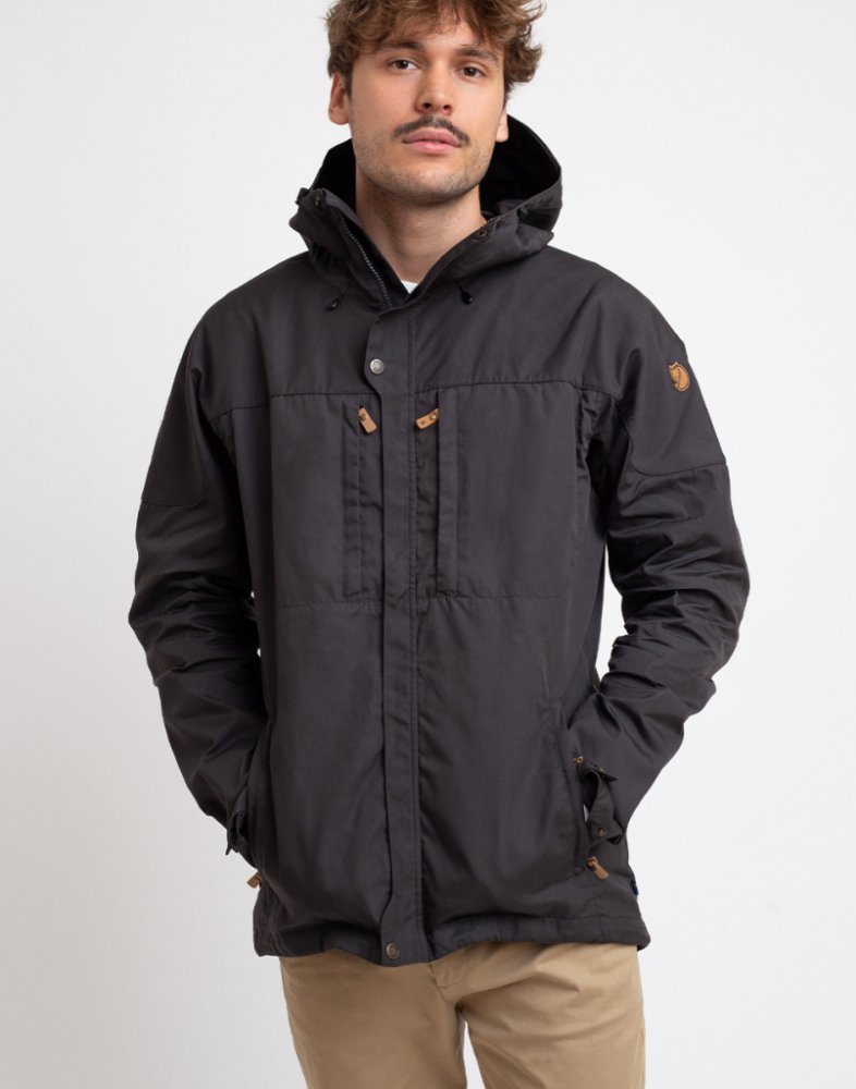 Pánská bunda z odolného materiálu G-1000 Lite s kapucí a s upravenými rameny, kde je využitá tkanina G-1000, která ještě zvýší odolnost při nošení těžkých batohů. Pánská outdoorová bunda Skogsö Jacket M od švédské značky Fjällräven by neměla chybět ve vaší výbavě. Bunda má vzadu o něco delší část, aby dobře kryla záda a má pevnou, nastavitelnou kapuci, která vás ochrání před lehkým deštěm.
