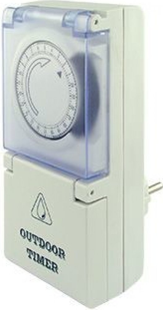 Tyto jednoduché mechanické spínací hodiny s 24hodinovým cyklem jsou vhodné do vlhkých místností i pro venkovní použití, neboť jsou vybaveny ochranou proti stříkající vodě a působení prachu. Technické parametry: Provozní napětí: 230 V / 50 Hz Max. spínaný příkon: 3600 W Max. spínaný proud: 16 A (2 A) Nejkratší spínaná doba: 15 minut Nejdelší spínaná doba: 24 hodin Krytí: IP44 Provozní teplota: - 25...