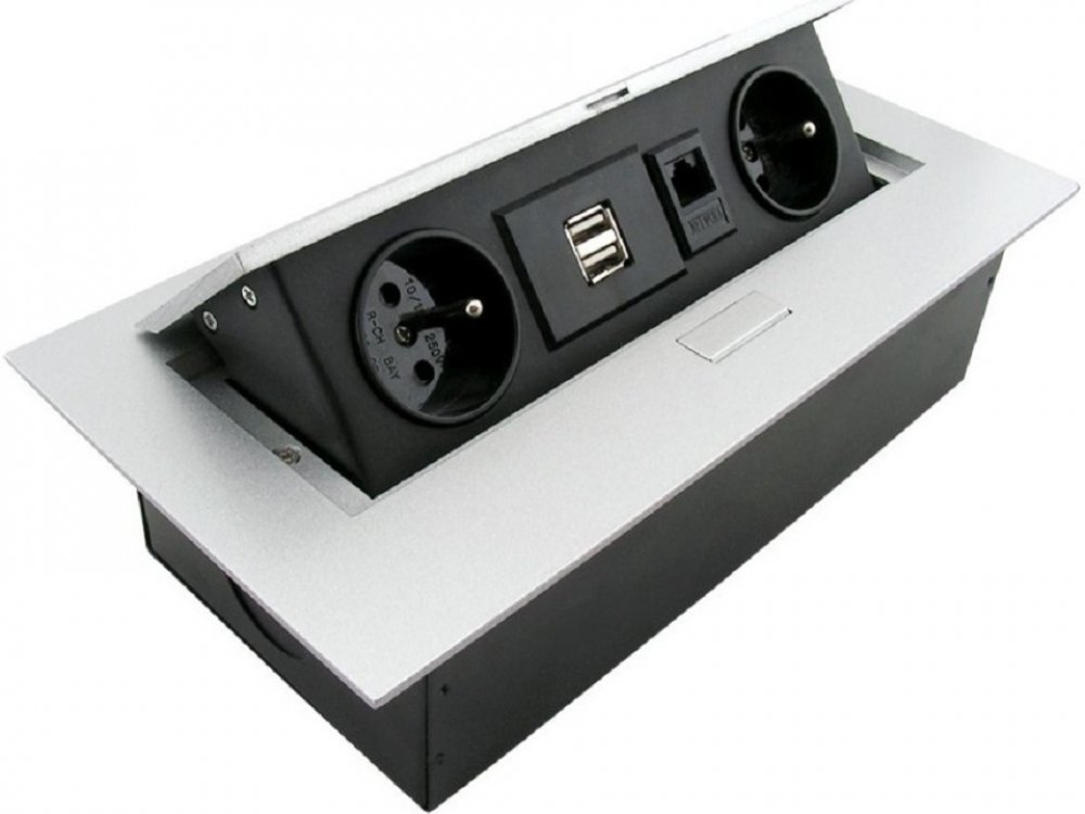 - vestavná/výsuvná zásuvka pro kuchyňské linky nebo pracovní desky v kanceláři či dílně