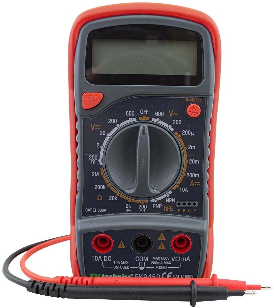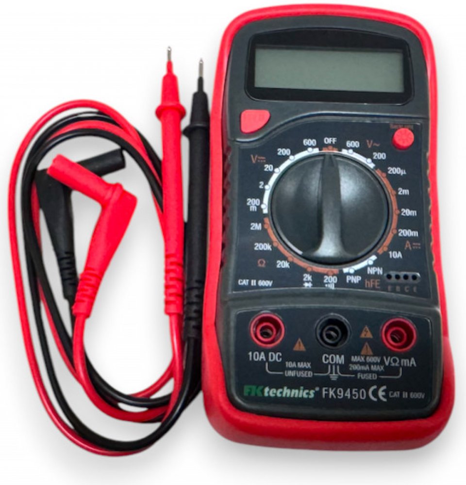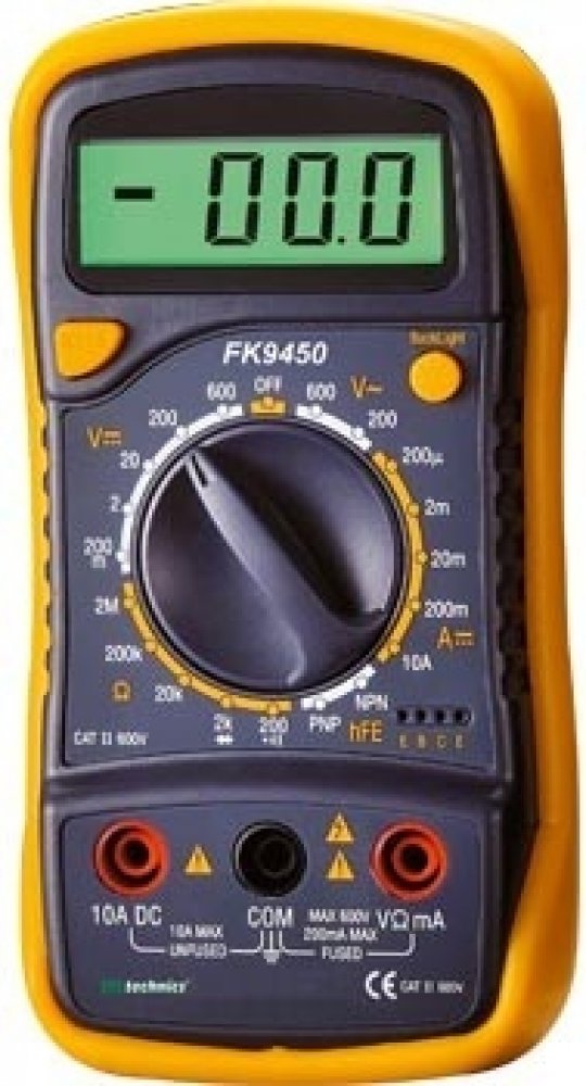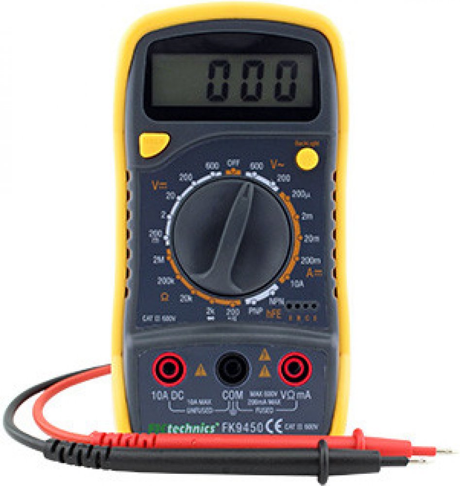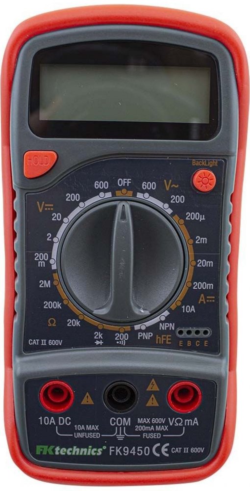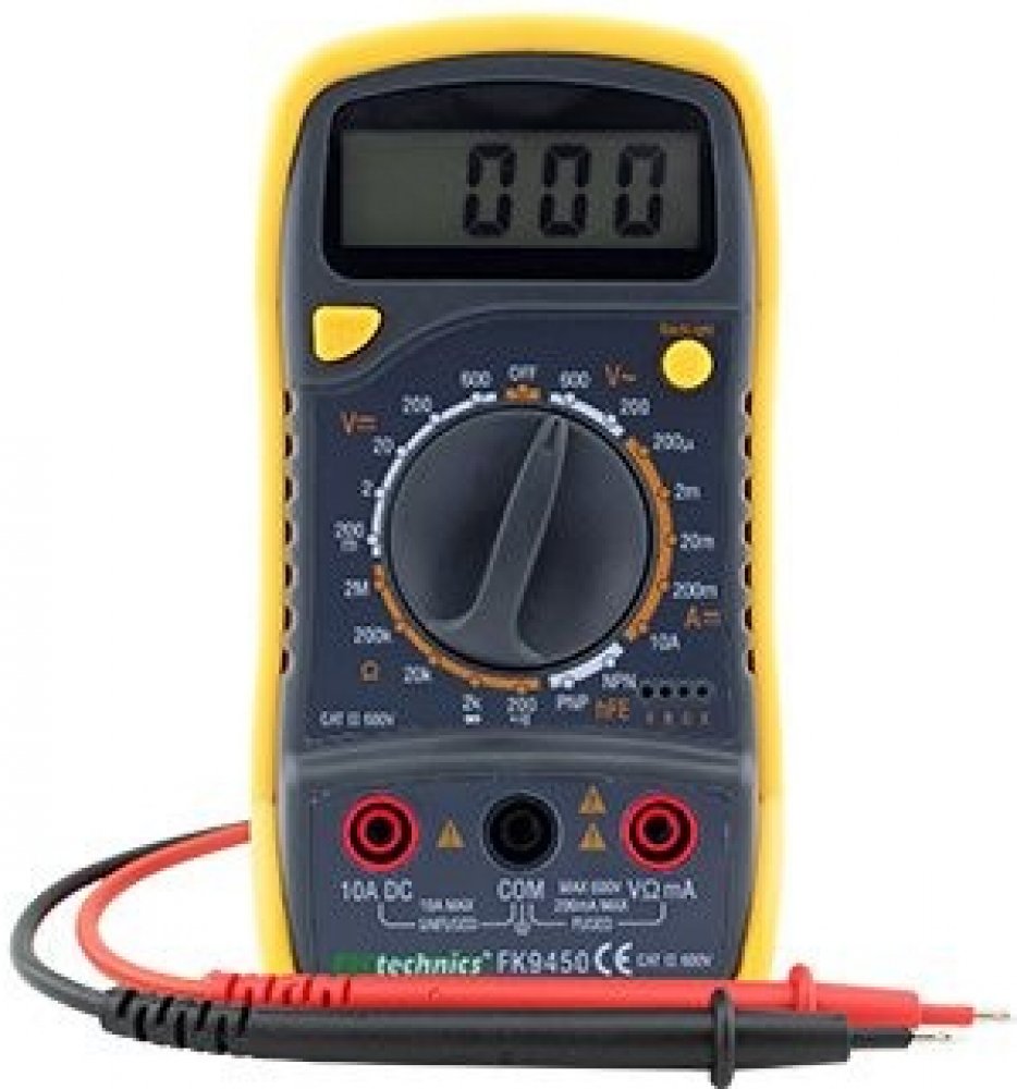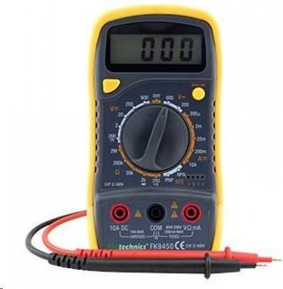 Malý a přesto robustní digitální multimetr FK9450 s 3,5 místným displejem pro měření všech základních elektrických veličin. Díky robustní konstrukci vydrží měřící přístroj i trochu hrubší zacházení, takže je ideálním měřícím přístrojem pro každodenní použití. Pro pohodlné čtení údajů na displeji je FK9450 vybaven podsvětleným LCD displejem.