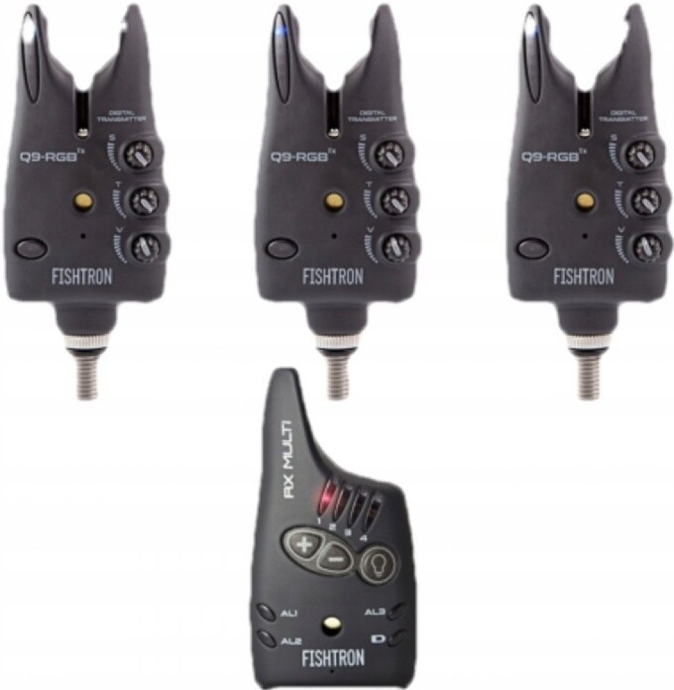 Nový signalizátor Fishtron Q9TX RGB vychází z úspěšného modelu Q9TX. Novinkou je zejména multifunkční optická signalizace s možností změny barvy. Klasikou je funkce MUTE, která krátkým stlačením tlačítka vypne všechny zvuky. Slouží pro klidné nastavení prutů. Funkce se pak stejně jednoduše zruší nebo je automaticky vypnuta po uplynutí času 60 vteřin. Signalizátor dále vyniká nejen množstvím moderních funkcí, ale hlavní důraz byl kladen na perfektní design. Ten zaručuje atraktivnost a originalitu výrobku. S tímto signalizátorem se neztratíte. Získáte spolehlivý a pěkný výrobek, který vás bude doprovázet na vašich výpravách k vodě. Unikátní multifunkční optická signalizace složená z řady LED diod informuje rybáře nejen o záběru, směru odvíjení vlasce a rychlosti odvíjení, ale i o nastavení některých funkcí. Samozřejmostí je paměťová funkce LED a možnost zapnout noční poziční světlo. Rybář má také možnost přepnout signalizátor do "diskrétního režimu", kdy se omezí výkon optické signalizace LED. Tato funkce bude využívaná zejména v noci, kdy by LED diody mohly působit rušivě. Záběr je pak signalizován zvukem (ten lze plynule regulovat) a problikáváním podsvětleného tlačítka. Horní LED jsou vypnuty. Nyní nově i funkce umožňující vypnout všechny LED - tedy i podsvětlené tlačítko). Celková mechanická odolnost výrobku je zaručena použitím kvalitních materiálů, odolnost proti dešti i mlze. Použitá elektronika využívá nejmodernějších součástek. Srdcem signalizátoru je mikroprocesor s inteligentním řízením spotřeby zaručující dlouhou výdrž baterie. Pomocí intuitivních regulačních prvků rychle nastavíte v širokém rozsahu požadovanou citlivost (délku potahu vlasce), hlasitost a výšku tónu a to od nejhlubších (připomínající kachnu) až po tóny vysoké a kolísavé. Široká škála a vhodný výběr tónu zaručí dobrou slyšitelnost i při nepříznivém počasí, jako je vítr a déšť nebo naopak decentní tón nerušící okolí. Nastavení citlivosti je možné již od 4 mm do 15 cm.