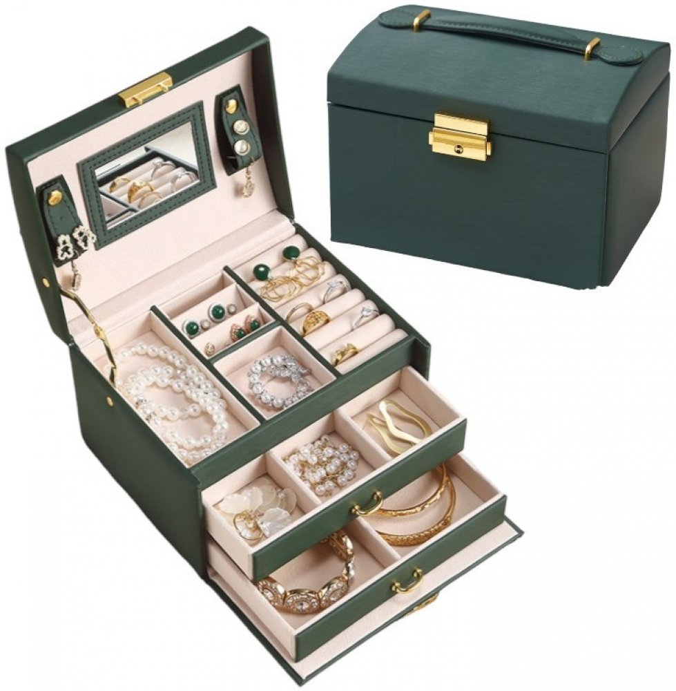 s naším elegantním a vysoce funkčním kufříkem na bižuterii a hodinky. Jeho rafinovaný design osloví každou ženu a promění vaše šperky v nádherné umělecké dílo. Tento zázrak praktických detailů kombinuje eleganci s bezpečností, takže vaše cennosti budou vždy na dosah a chráněny před poškozením.