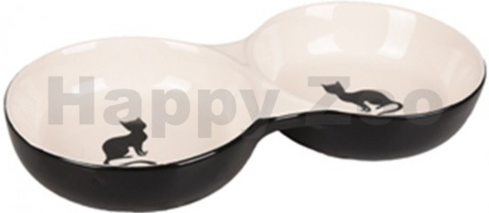 Keramická dvojmiska FLAMINGO Cat Nala černobílá 2x11cm (145ml)Elegantní nízká keramická dvojmiska pro kočkySpecifikace produktuelegantní dvoumiska pro kočkynízká miska usnadňuje kočkám příjem potravy i vodyse vzorem kočkyobjem: 2 x 145 ml