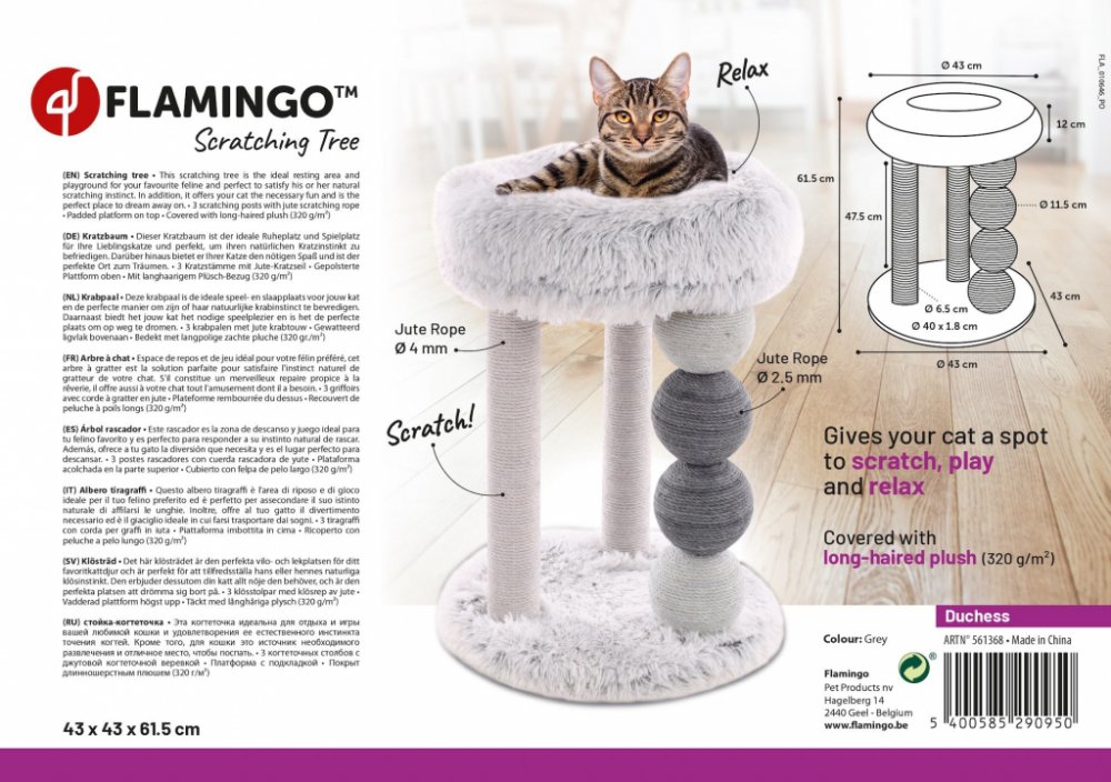 Flamingo 43 x 43 x 61.5 cm 61.5 cm bílá/šedá škrabadla plyšová / mikroplyšová Flamingo stromy 4.46 kg se středně velkým půdorysem