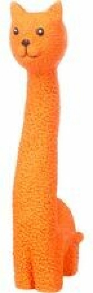 Dlouhá latexová hračka pro psa. Je měkká a lehká a výborně se přenáší v tlamě. Hračka píská a může nahradit klacík k aportování či přetahování, nebo být jen tak ke kousání. Kousání pomáhá zlepšovat hygienu v tlamě. Kočka má zdrsněný povrch a zářivou barvu, díky které ji snadno najdete např. v trávě.