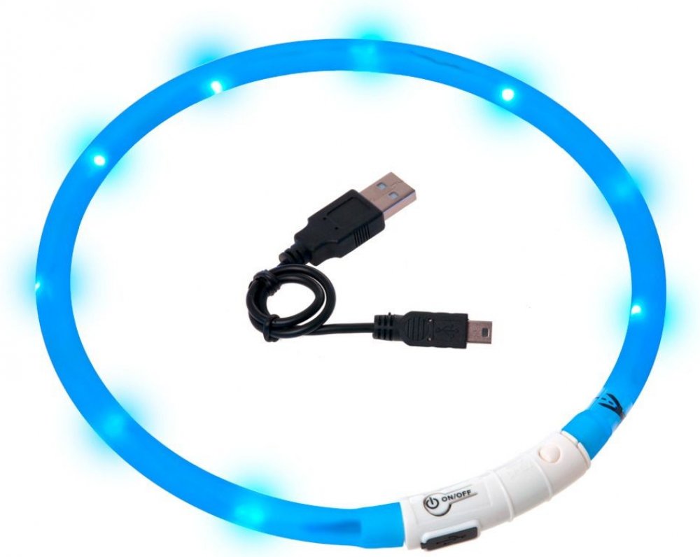 LED světelný obojek modrý viditelný až cca 500 m. Dobíjecí baterie pomocí USB kabelu - žádné jiné baterie nutné - voděodolná - blikající světlo nebo kontinuální světlo. Velikost 20-75 cm LED světelný obojek modrý viditelný až cca 500 m. Dobíjecí baterie pomocí USB kabelu - žádné jiné baterie nutné - voděodolná - blikající světlo nebo kontinuální světlo. Velikost 20-75 cm
