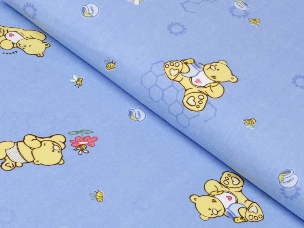 Flanelová látka - medvídci na modrém - metráž šířka 145 cm