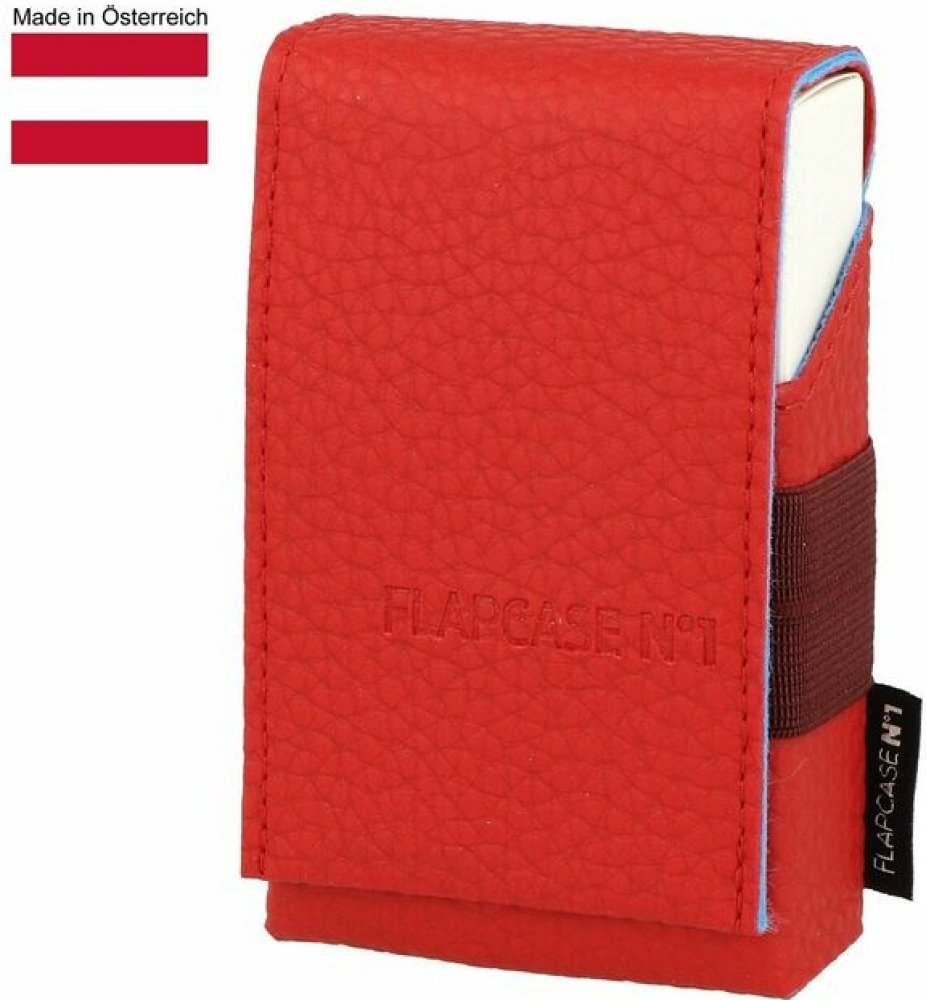 Elegantní kožené pouzdro na cigarety s gumou na zapalovač. Praktické pouzdro Flapcase No.1 na celou krabičku cigaret klasické velikosti King Size (80 mm) je vyrobené z kvalitní kůže. Barevný povrch v červené barvě má jemnou texturu. Vypadnutí krabičky je zajištěno zapínáním pouzdra na magnet. Po celém obvodu pouzdra je guma, díky které můžeme uchytit zapalovač, který je nedílnou součástí kuřáka ci...