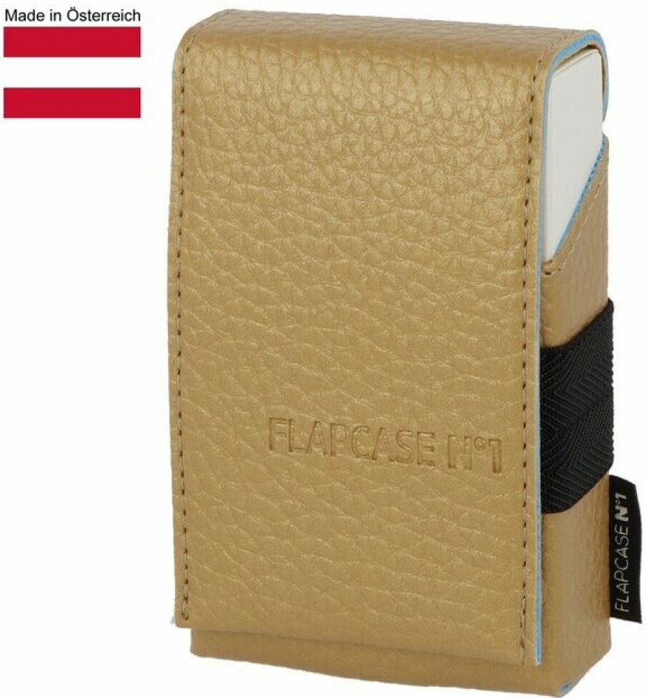 Kožené pouzdro na cigarety s gumou na zapalovač ručně vyrobené v Rakousku. Praktické pouzdro Flapcase na celou krabičku cigaret klasické velikosti King Size (80 mm) je vyrobené z kvalitní kůže. Pololesklý povrch pouzdra ve zlatém odstínu má jemnou texturu. Vypadnutí krabičky je zajištěno zapínáním pouzdra na magnet. Po celém obvodu pouzdra je guma, za kterou můžeme vložit zapalovač. Pouzdro je dod...