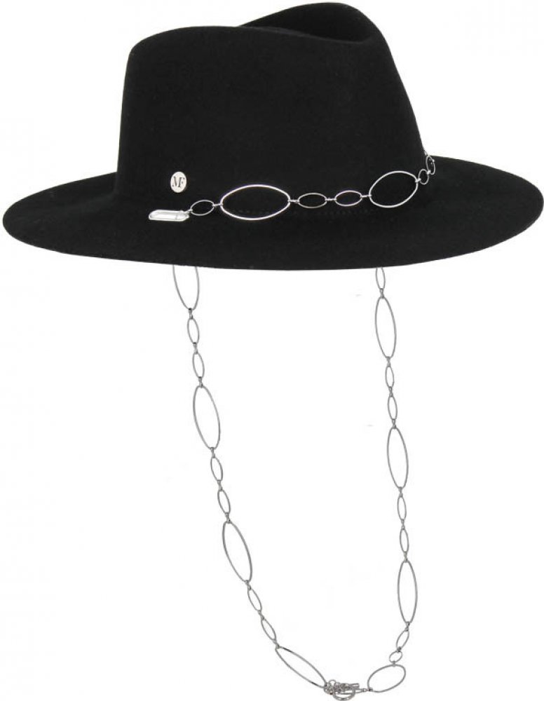 Fléchet - Since 1859 Dámský černý klobouk fedora se stříbrným řetízkem - Fléchet Velikost: 57 cm (M)