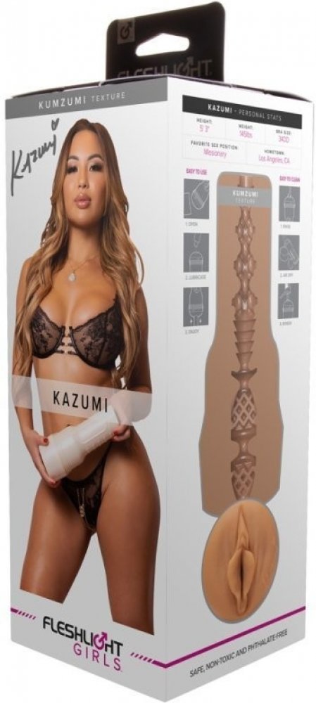 Chcete okusit nejintimnější část jedné z pornostar? Je to jednoduché. Tato umělá vagina je originální otisk vaginy Kazumi Kumzimi. Umělá vagina je vyrobena v realistickém odstínu barvy těla. Vnitřek vložky se skládá z pevných komor pokrytých výstupky.