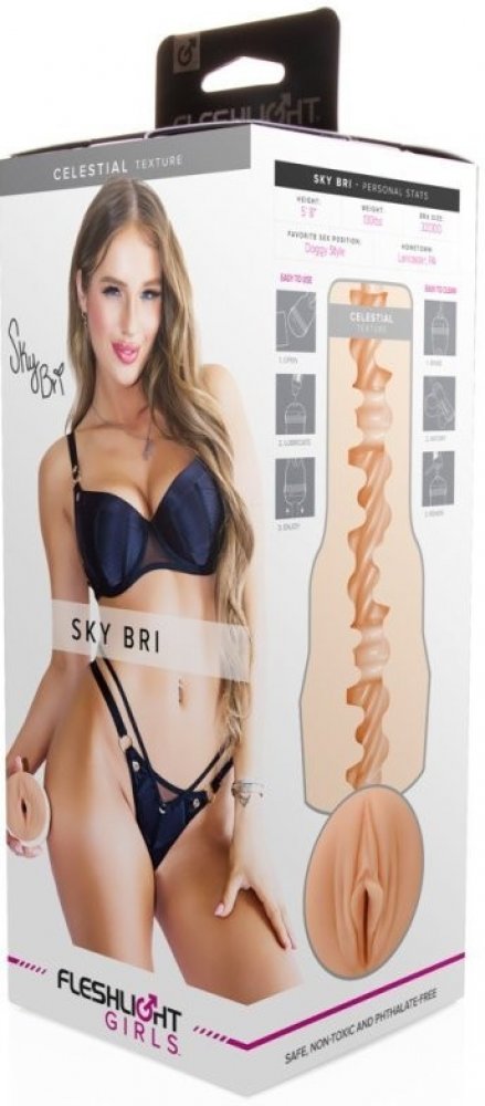 Fleshlight Girls Sky Bri Celestial je masturbátor odlitý podle skutečné pornoherčky. Masturbátor je vyroben ze SuperSkinTM materiálu, který napodobuje lidskou kůži - je velmi flexibilní a odolný.