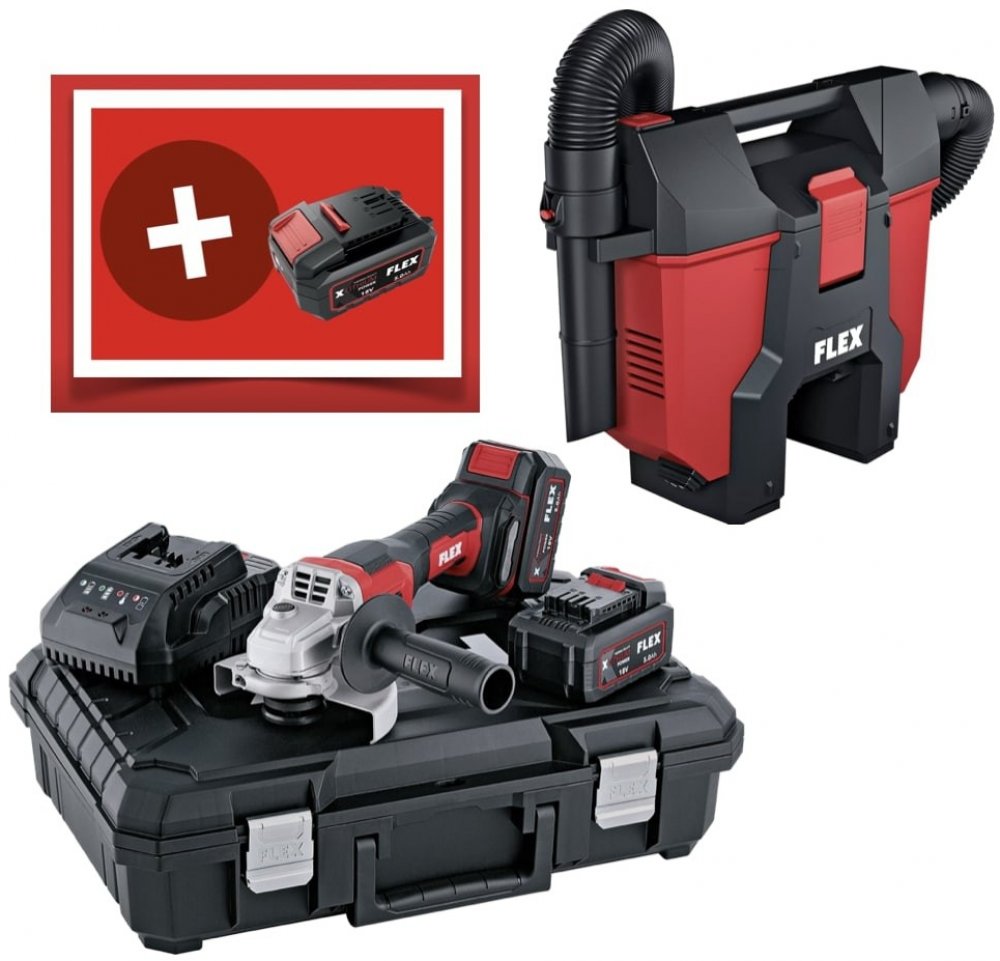 FLEX L 125 18.0-EC LD/5.0 Set, Aku úhlová bruska 18,0 V Light Duty, 125 mm + FLEX VC 2 L MC Hip 18.0-EC Kompaktní aku vysavač 1,5 l třída L