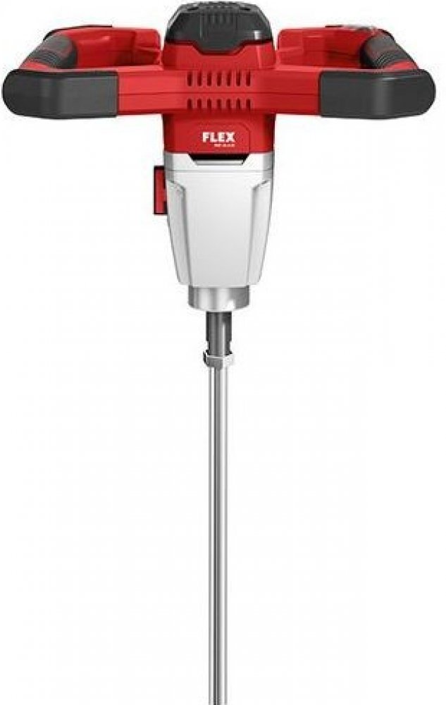• Electronic Management System (EMS) chrání stroj, prodlužuje životnost a zvyšuje efektivitu.• Bezuhlíkový motor s vyššími výkonnostními parametry a delší životností.• Robustní dvoustupňová převodovka: silně dimenzovaná a s převodem, pro otáčky přizpůsobené materiálu, optimalizovaným pro vysoký točivý moment.• Komfortní 3-stupňový spínač, ovladatelný bez potřeby vypnutí, chráněný gumovou krytkou. • Stupeň 1: čištění, stupeň 2: rozmíchání, stupeň 3: míchání.• Otočný přepínač pro nastavení optimální rychlosti.• Převodový stupeňy 1: pro vysoce viskozní stavební materiály, převodový stupeň 2: pro středně a nízkoviskozní stavební materiály.• Spínač pro pomalý a citlivý náběh.• Vypínač s aretací a ochranou.• Flexibilní gumový kryt vypínače chrání před znečištěním. Žádné poruchy funkčnosti kvůli zalepeným vypínačům.• Ergonomické rukojeti: malá hmotnost, ideální tvar pro pohodlné a komfortní použití bez způsobení únavy.• Čtyři ochranné gumové krytky nabízejí bezpečné uložení při přepravě a zajišťují ochranu proti poškozením nárazem na stavbě.• Ochranný kryt motoru s vývodem chladícího vzduchu chrání proti dešťové vodě.• Patentovaná aretace hřídele s ochranou proti rozběhu pro výměnu míchací metly bez nástrojů.• Použitelné pro míchání do 30 kg.• Pomocí míchací tyče WR2 pro míchaný materiál: pastovitý až tuhý. Lepidla na spáry, mezi dlaždice, vyrovnávací hmoty, lepidla, hotové omítky, ...• FLEX Aku-systém: provoz se všemi 18,0 V akumulátory FLEX.