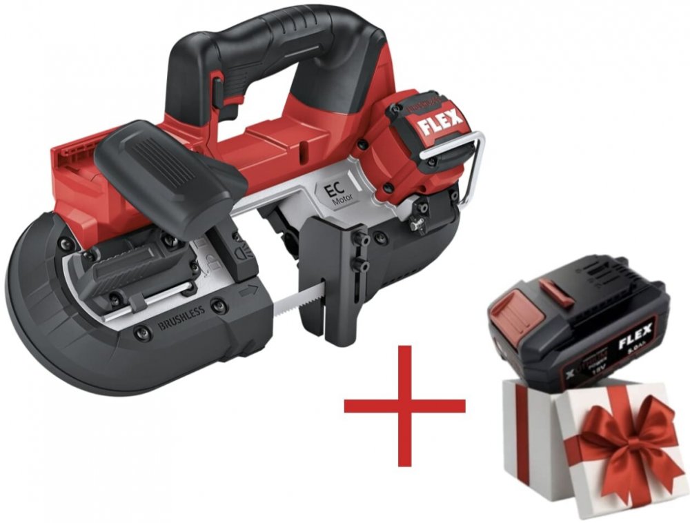FLEX SBE 64 18-EC Aku pásová pila 18 V, 64mm + 1x akce baterie zdarma 5.0Ah po registraci stroje kterou Vám uděláme