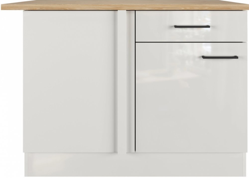 LUND Série LUND se skládá z různých skříněk - horních, spodních, prosklených, vysokých a mnoha předkonfigurovaných kuchyňských sestav. Skříňky jsou vyrobeny z dřevotřískových desek potažených melaminem (MFC) a opatřeny kovovými rukojeťmi v elegantní černé barvě. Vnitřní části korpusu mají bílou matnou barvu, vnější strana korpusu má kouřově šedou matnou barvu, stejně jako sokl a přední strana skříněk je v lesklé světle šedé barvě. Prosklené horní skříňky jsou opatřeny mléčným sklem. Všechny skříňky jsou opatřeny kvalitními kovovými pojezdy a panty s možností nastavení ve 3 rozměrech. Jednotlivé skříňky a kuchyňské sestavy jsou opatřeny pracovní deskou v dekoru dub Cosmopolitan o tloušťce 28 mm, která je vyrobena z vysokotlakého laminátu (HPL) s až 90% obsahem dřeva. Kuchyně a kuchyňské skříňky jsou dodávány v rozloženém stavu a jsou oboustranně smontovatelné (vlevo i vpravo). Flex-Well Flex-Well je jedním z lídrů na německém trhu v oblasti rozložených kuchyní. Veškeré dřevěné části jsou vyrobeny v Německu. Společnost Flex-Well nabízí samostatné skříňky, spotřebiče a kompletní kuchyňské bloky, buď již vybavené spotřebiči, nebo k vybavení spotřebiči vašeho výběru. Vyberte si ze široké nabídky tohoto dodavatele. Cenově výhodné kuchyně a skříňky Flex-Well jsou dodávány v rozloženém stavu až k Vám domů. Díky přiloženému návodu je snadno a rychle nainstalujete. Berte prosím na vědomí, že k připojení nové kuchyně je nutné některé příslušenství zakoupit zvlášť. V případě potřeby si nechte poradit na naších prodejnách OBI od plánovačů kuchyní nebo našich odborných poradců.