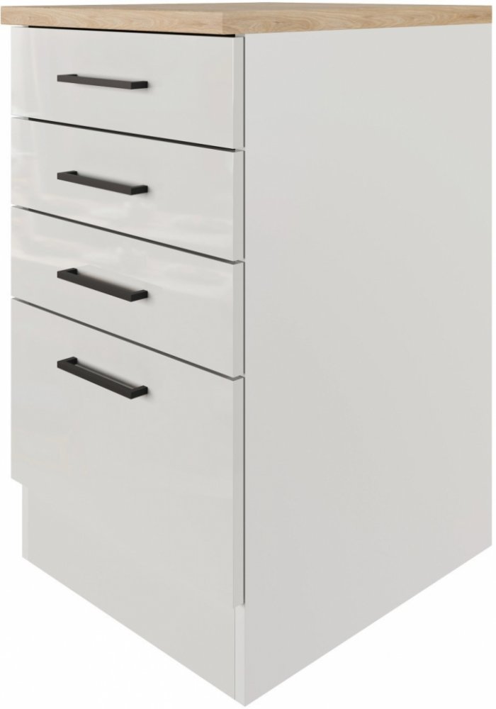 LUND Série LUND se skládá z různých skříněk - horních, spodních, prosklených, vysokých a mnoha předkonfigurovaných kuchyňských sestav. Skříňky jsou vyrobeny z dřevotřískových desek potažených melaminem (MFC) a opatřeny kovovými rukojeťmi v elegantní černé barvě. Vnitřní části korpusu mají bílou matnou barvu, vnější strana korpusu má kouřově šedou matnou barvu, stejně jako sokl a přední strana skříněk je v lesklé světle šedé barvě. Prosklené horní skříňky jsou opatřeny mléčným sklem. Všechny skříňky jsou opatřeny kvalitními kovovými pojezdy a panty s možností nastavení ve 3 rozměrech. Jednotlivé skříňky a kuchyňské sestavy jsou opatřeny pracovní deskou v dekoru dub Cosmopolitan o tloušťce 28 mm, která je vyrobena z vysokotlakého laminátu (HPL) s až 90% obsahem dřeva. Kuchyně a kuchyňské skříňky jsou dodávány v rozloženém stavu a jsou oboustranně smontovatelné (vlevo i vpravo). Flex-Well Flex-Well je jedním z lídrů na německém trhu v oblasti rozložených kuchyní. Veškeré dřevěné části jsou vyrobeny v Německu. Společnost Flex-Well nabízí samostatné skříňky, spotřebiče a kompletní kuchyňské bloky, buď již vybavené spotřebiči, nebo k vybavení spotřebiči vašeho výběru. Vyberte si ze široké nabídky tohoto dodavatele. Cenově výhodné kuchyně a skříňky Flex-Well jsou dodávány v rozloženém stavu až k Vám domů. Díky přiloženému návodu je snadno a rychle nainstalujete. Berte prosím na vědomí, že k připojení nové kuchyně je nutné některé příslušenství zakoupit zvlášť. V případě potřeby si nechte poradit na naších prodejnách OBI od plánovačů kuchyní nebo našich odborných poradců.