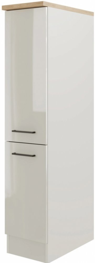 LUND Série LUND se skládá z různých skříněk - horních, spodních, prosklených, vysokých a mnoha předkonfigurovaných kuchyňských sestav. Skříňky jsou vyrobeny z dřevotřískových desek potažených melaminem (MFC) a opatřeny kovovými rukojeťmi v elegantní černé barvě. Vnitřní části korpusu mají bílou matnou barvu, vnější strana korpusu má kouřově šedou matnou barvu, stejně jako sokl a přední strana skříněk je v lesklé světle šedé barvě. Prosklené horní skříňky jsou opatřeny mléčným sklem. Všechny skříňky jsou opatřeny kvalitními kovovými pojezdy a panty s možností nastavení ve 3 rozměrech. Jednotlivé skříňky a kuchyňské sestavy jsou opatřeny pracovní deskou v dekoru dub Cosmopolitan o tloušťce 28 mm, která je vyrobena z vysokotlakého laminátu (HPL) s až 90% obsahem dřeva. Kuchyně a kuchyňské skříňky jsou dodávány v rozloženém stavu a jsou oboustranně smontovatelné (vlevo i vpravo). Flex-Well Flex-Well je jedním z lídrů na německém trhu v oblasti rozložených kuchyní. Veškeré dřevěné části jsou vyrobeny v Německu. Společnost Flex-Well nabízí samostatné skříňky, spotřebiče a kompletní kuchyňské bloky, buď již vybavené spotřebiči, nebo k vybavení spotřebiči vašeho výběru. Vyberte si ze široké nabídky tohoto dodavatele. Cenově výhodné kuchyně a skříňky Flex-Well jsou dodávány v rozloženém stavu až k Vám domů. Díky přiloženému návodu je snadno a rychle nainstalujete. Berte prosím na vědomí, že k připojení nové kuchyně je nutné některé příslušenství zakoupit zvlášť. V případě potřeby si nechte poradit na naších prodejnách OBI od plánovačů kuchyní nebo našich odborných poradců.