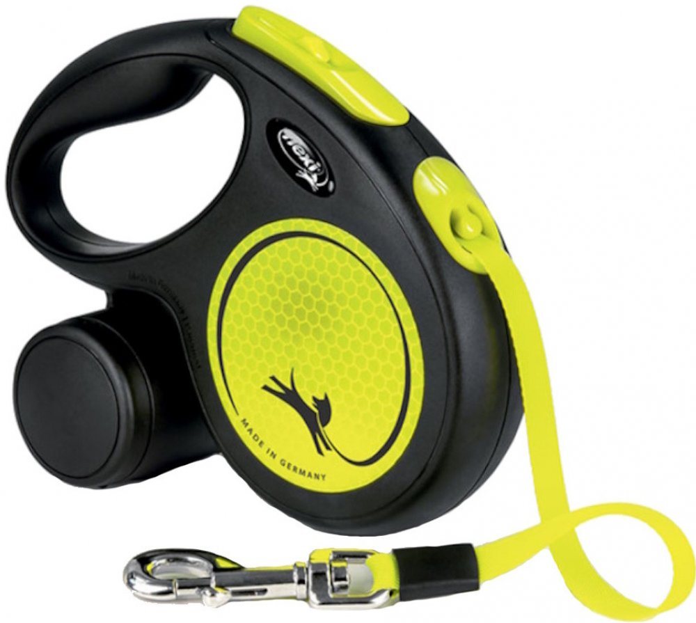 Reflexní nálepky odráží světlomety ve vzdálenosti více než 150 m. Díky neonově zbarveným prvkům jste lépe viděni, jste ve větším bezpečí! Vy a Váš pes patříte k sobě jako jeden tým! Lidé Vás uvidí již z dálky. Vylepšený brzdový systém s krátkým zdvihem umožňuje více kontroly. Lze přidat (od velikosti S) i Multi Box pro ukládání pamlsků či sáčků. Rodinná firma flexi vyrábí výhradně na území Německa. V závodě v Bargteheide u Hamburgu vzniká vše, počínaje návrhem až po výrobu vysoce kvalitních vodítek – Made in Germany. Firma flexi je vynálezcem samonavíjecího vodítka a jedničkou na světovém trhu, exportuje do více než 90 zemí světa.