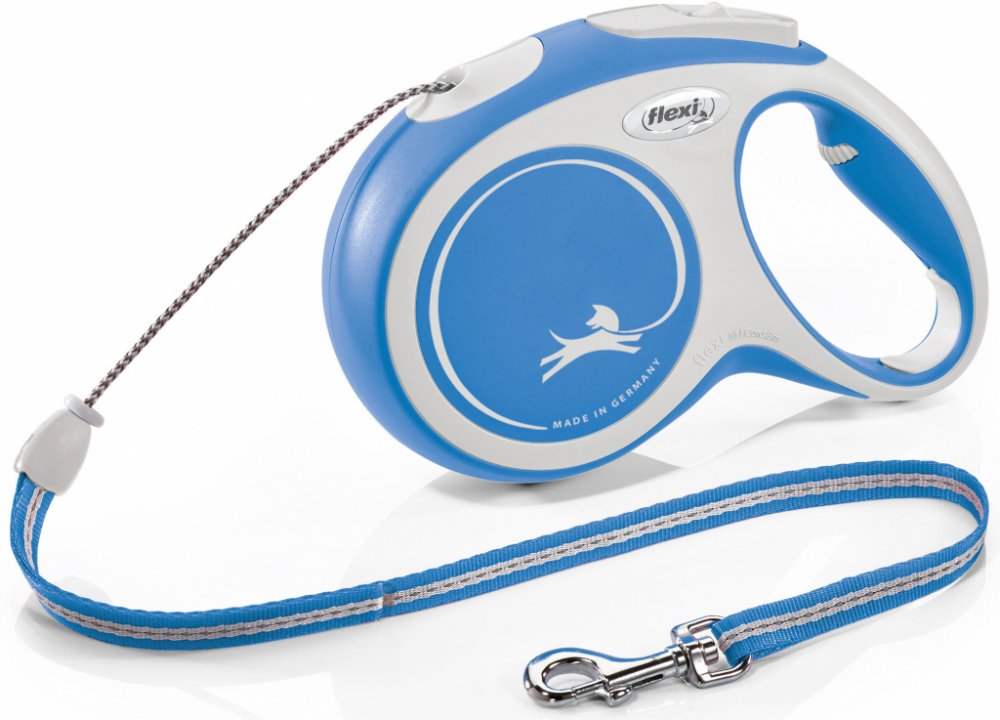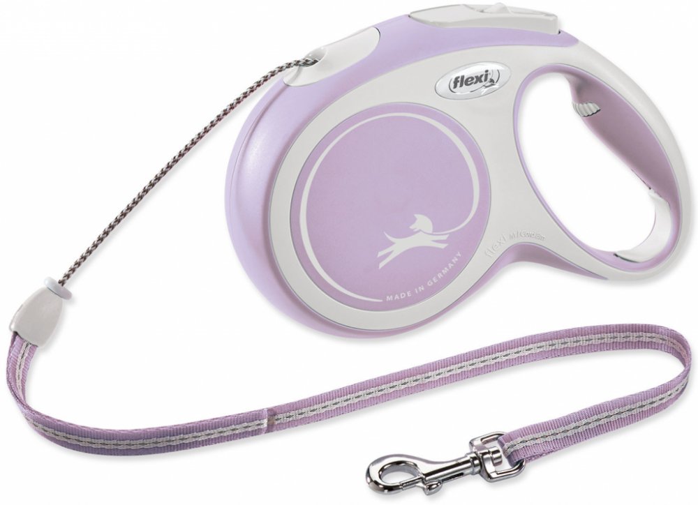 Samonavíjecí vodítko Flexi Comfort NEW je vyhotoveno v jemných pastelových barvách. Vodítka pro psy Flexi disponují brzdným systémem, který ve zlomku vteřiny zastaví pohyb lanka. Pro snadné upevnění vodítka k obojku nebo postroji je na konci lanka chromovaná karabina. Na spodní část vodítka Flexi Comfort (tzn. pod rukojeť) lze připevnit praktický box (není součástí), díky kterému máte možnost mít stále při ruce pamlsky nebo sáčky na exkrementy.