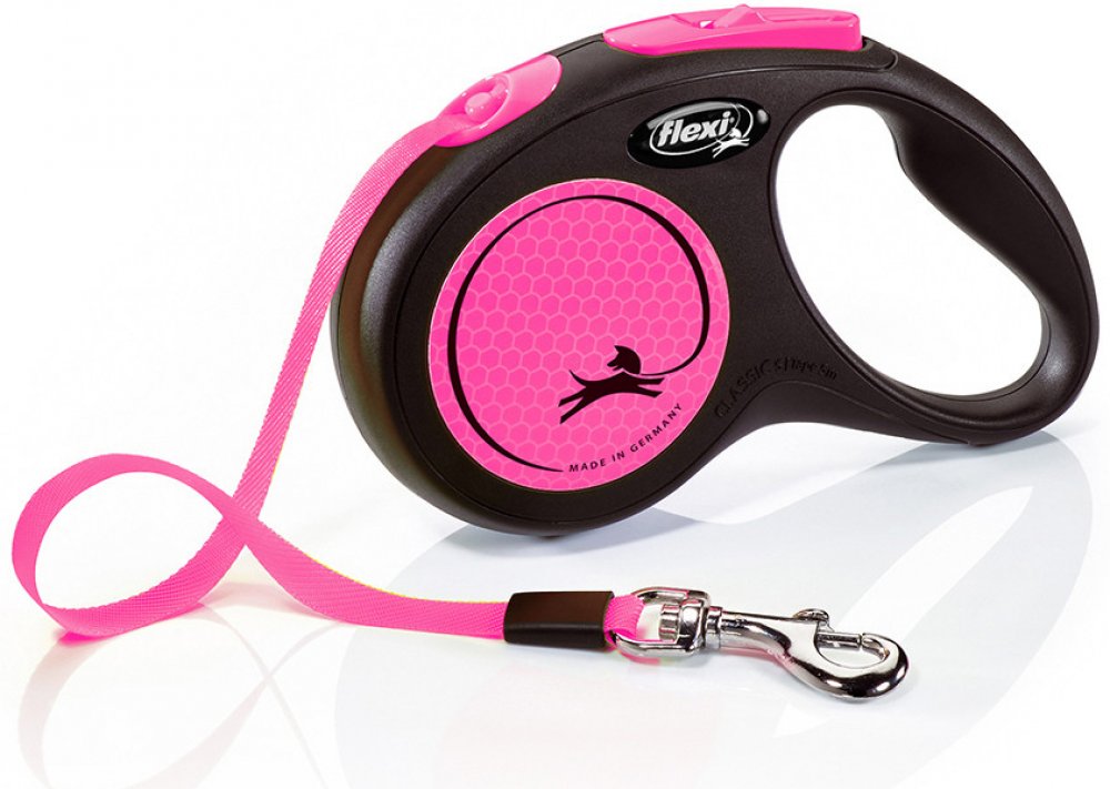 Vodítko FLEXI Neon M pásek 5m/25kg černá/růžová NEW