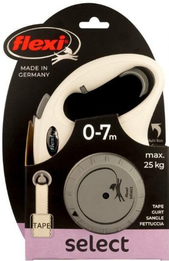 Vodítko FLEXI Select (S/M) pásek světle šedé (7m, do 25kg)
